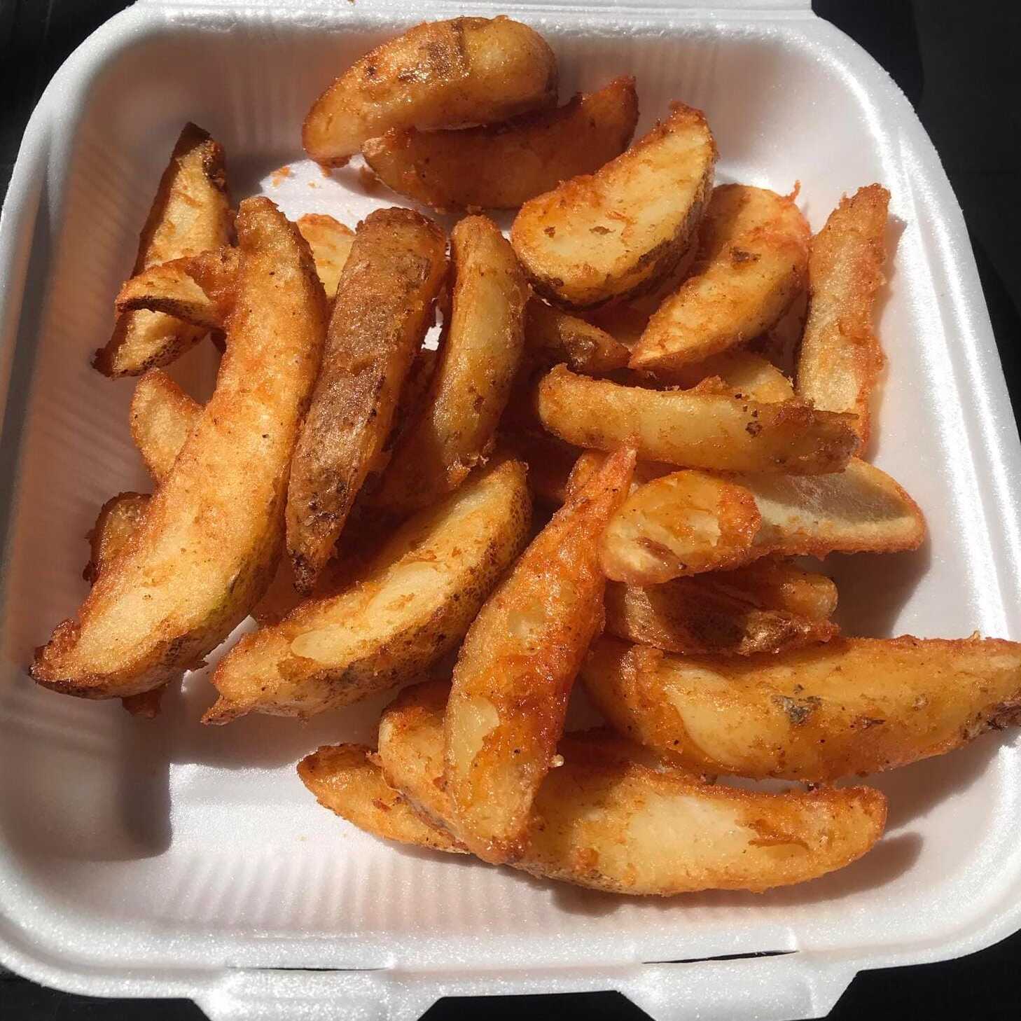 Orden de papas a la francesa sazonadas con la receta del danzante de luengas barbas.
