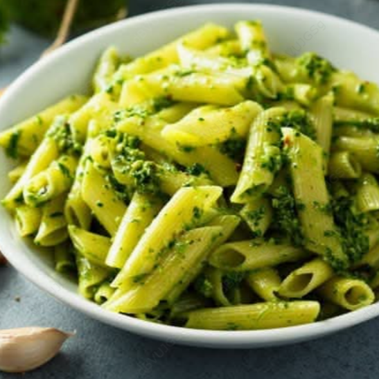 Frescura que enamora, pasta aldente bañada en una salsa pesto artesanal de albahaca, ajo, piñón y queso parmesano, todo ligado con aceite de oliva extra virgen. ¡Aromático, lleno de color y sabor!