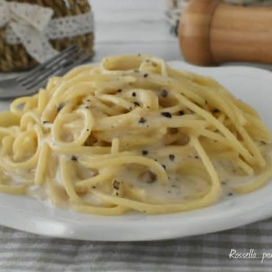 La elegancia de lo simple, pasta al dente y una cremosa mezcla de queso pecorino romano, pimienta recién molida, fundido en el almidón de la pasta, para crear una salsa cremosa y picante. ¡Sabor directo y sin adornos!