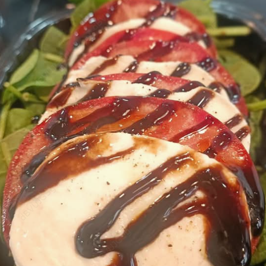 Fresca, colorida y llena de sabor, rodajas de tomate jugoso, mozzarella fior di latte, albahaca, aceite de oliva extra virgen y reducción de balsámico. ¡Un clásico ligero y fresco!