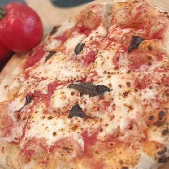 Tomate, mozzarella fior di latte, mozzarella fresca y parmesano.