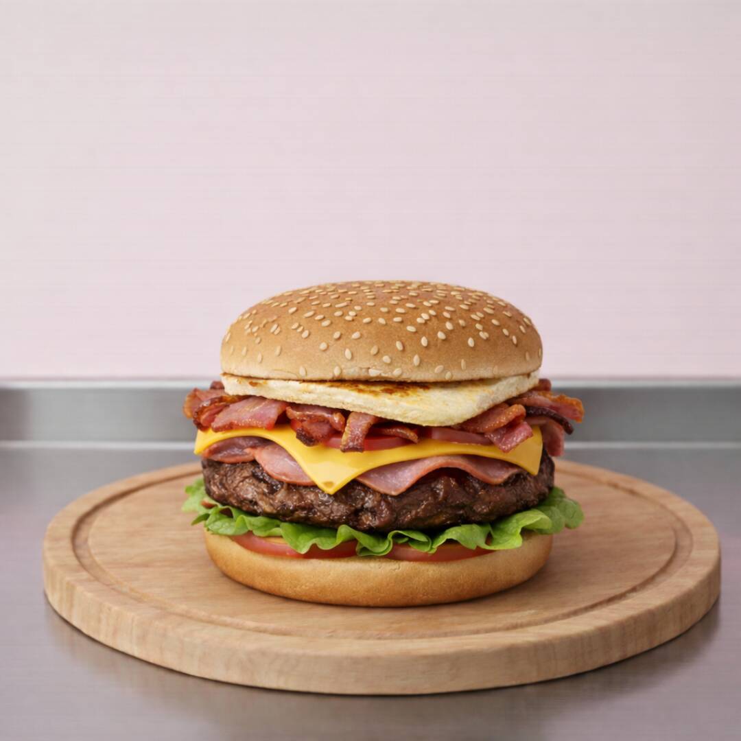 Una combinación poderosa: carne de pierna jugosa, salchicha dorada, jamón, queso americano derretido y tocino crujiente, todo dentro de pan recién tostado. Abundante, intenso y lleno de sabor en cada mordida. El antojo definitivo para quienes quieren todo, en uno solo.