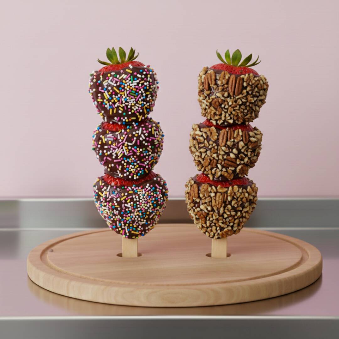 Fresas frescas cubiertas con chocolate y el topping que tú prefieras. Elige tu favorita: coco rallado, coco tostado, granola o chispitas de colores. Jugosas, crujientes y simplemente irresistibles.