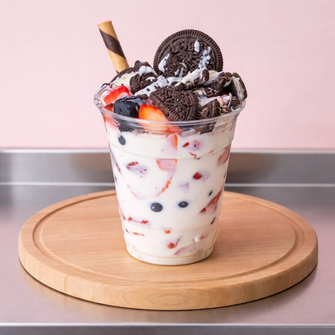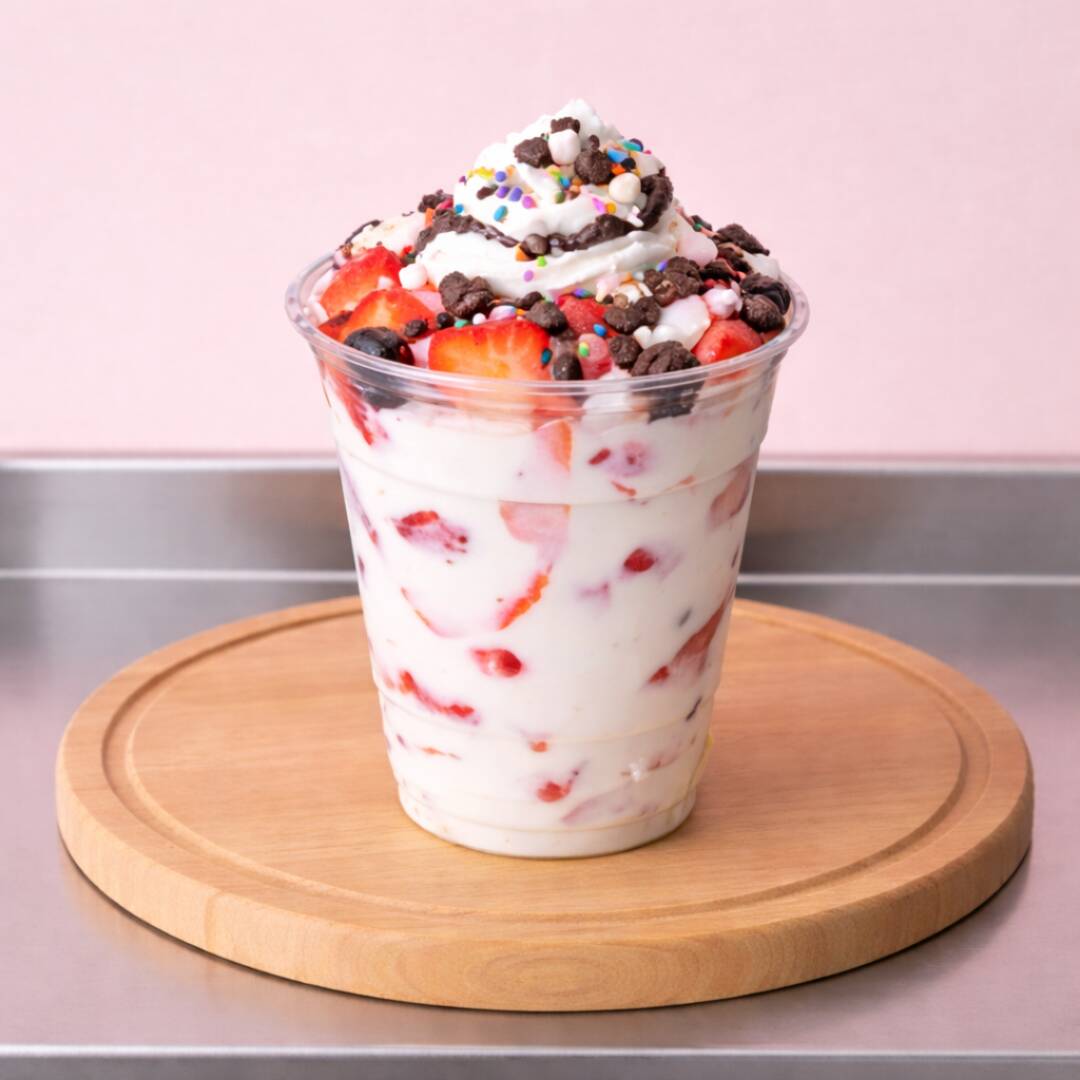 Servidas en vaso con crema estilo biónico y cobertura de chocolate, decoradas con chantilly y 2 toppings a elegir. Frescas, cremosas y con el balance perfecto entre dulzura y textura en cada cucharada.