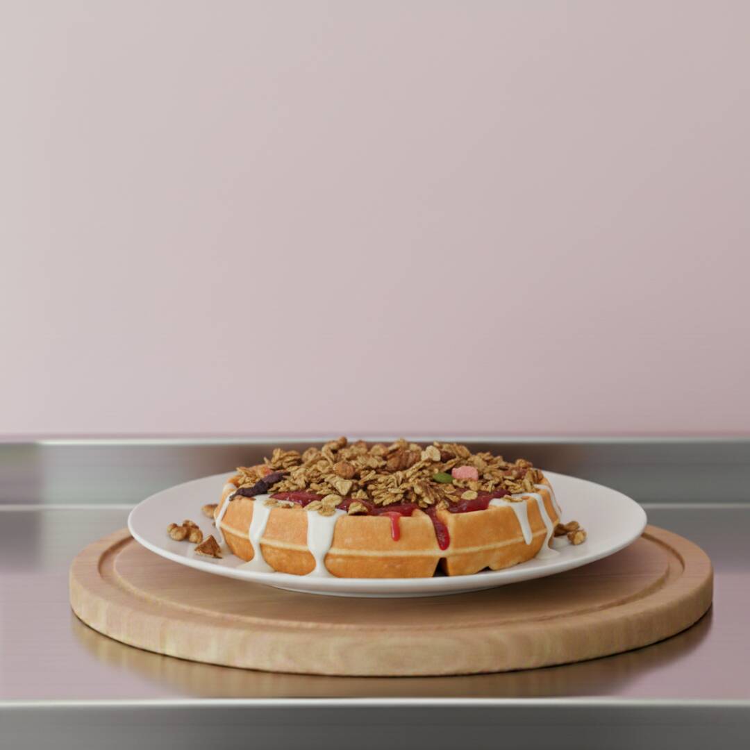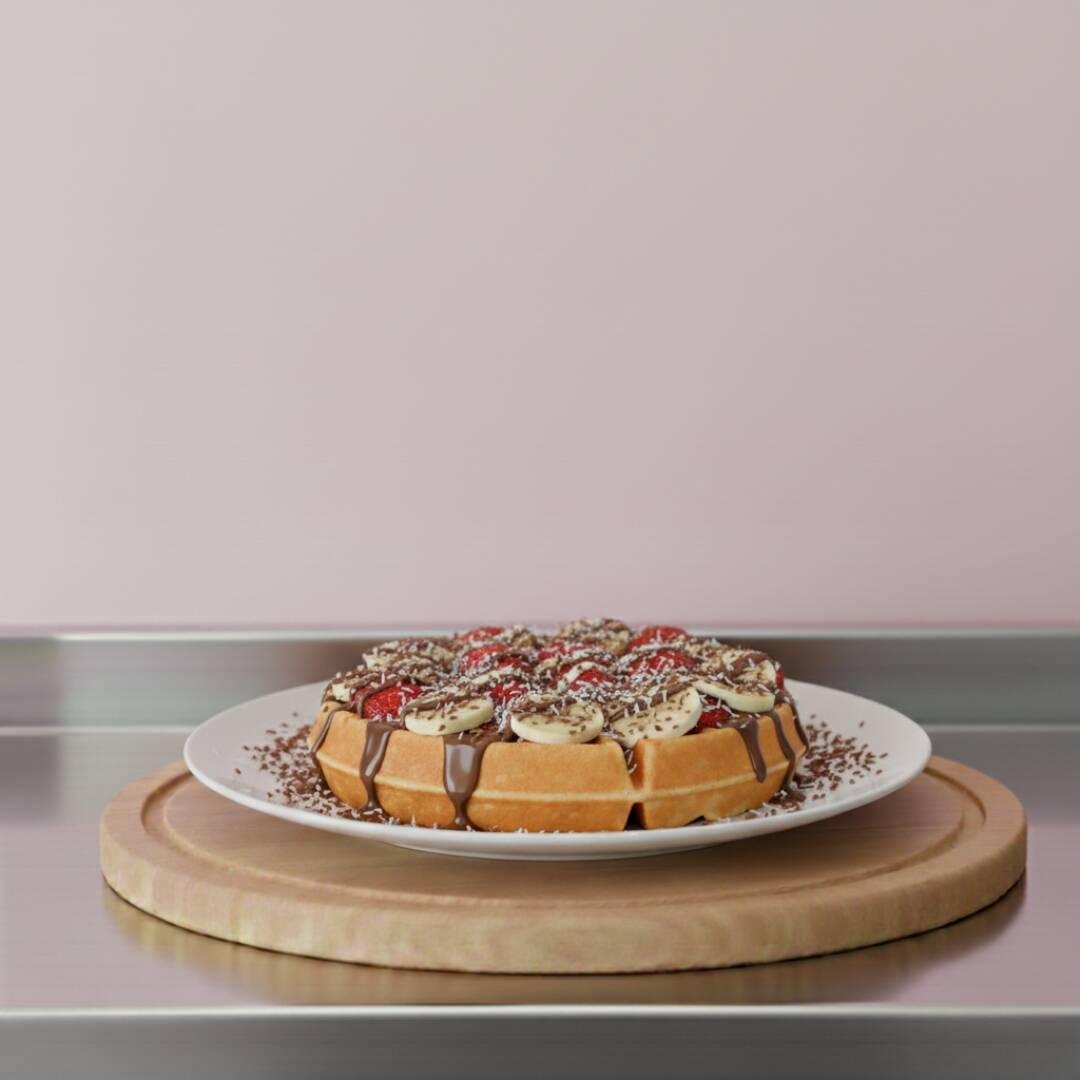 Waffle caliente servido con fruta fresca y un toque dulce que realza cada bocado. Ligero, equilibrado y delicioso.