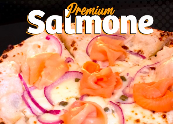 Salmón, alcaparras, cebolla morada, salsa blanca y queso mozzarella.