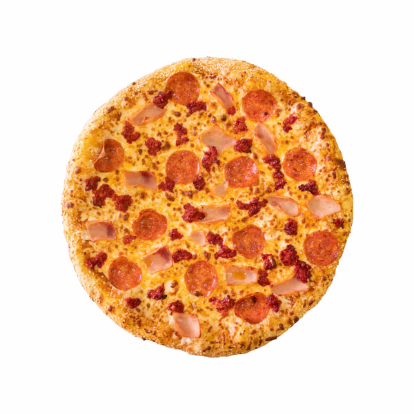 30 centímetros de diámetro, 8 rebanadas. Salsa y Queso