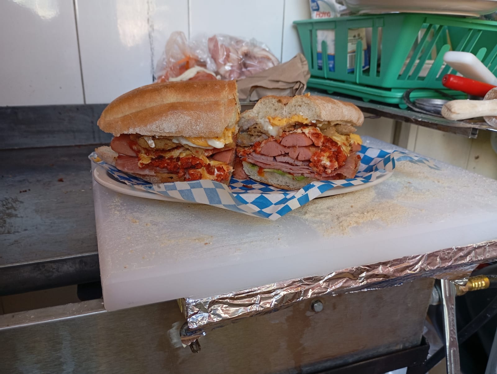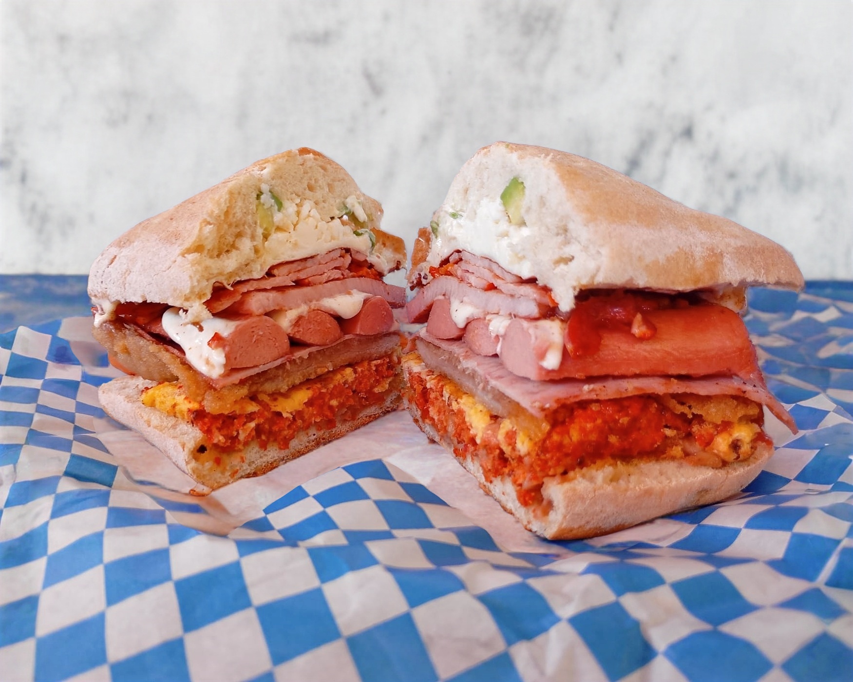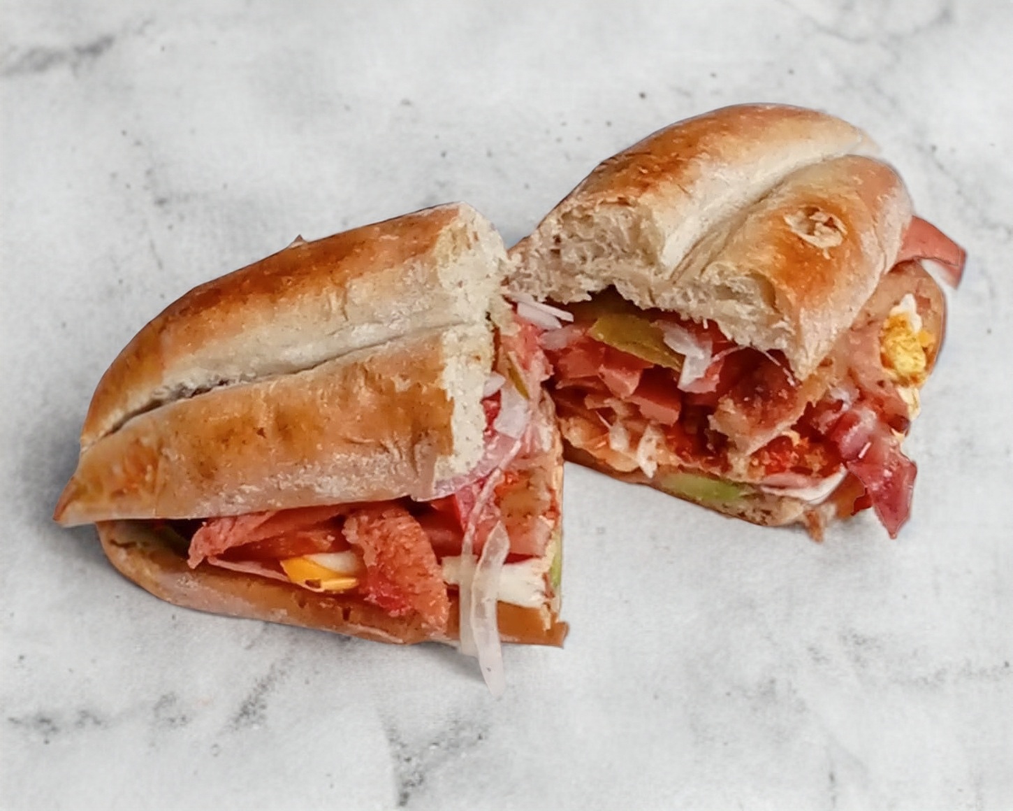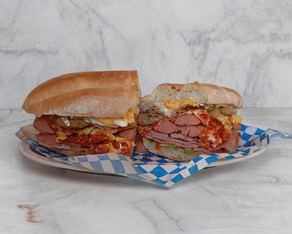Torta combinada con chorizo, huevo y quesillo.