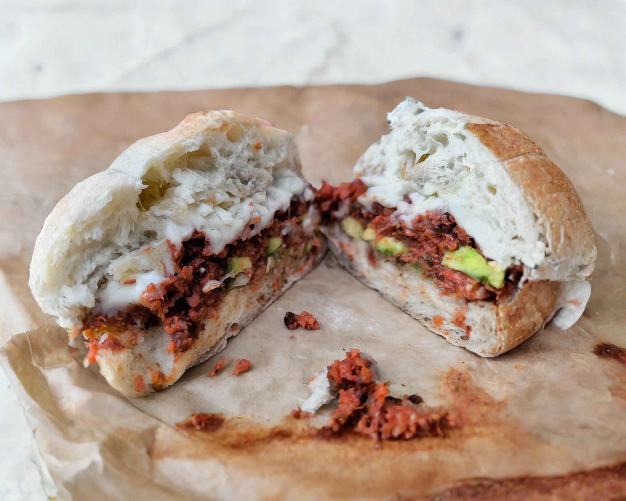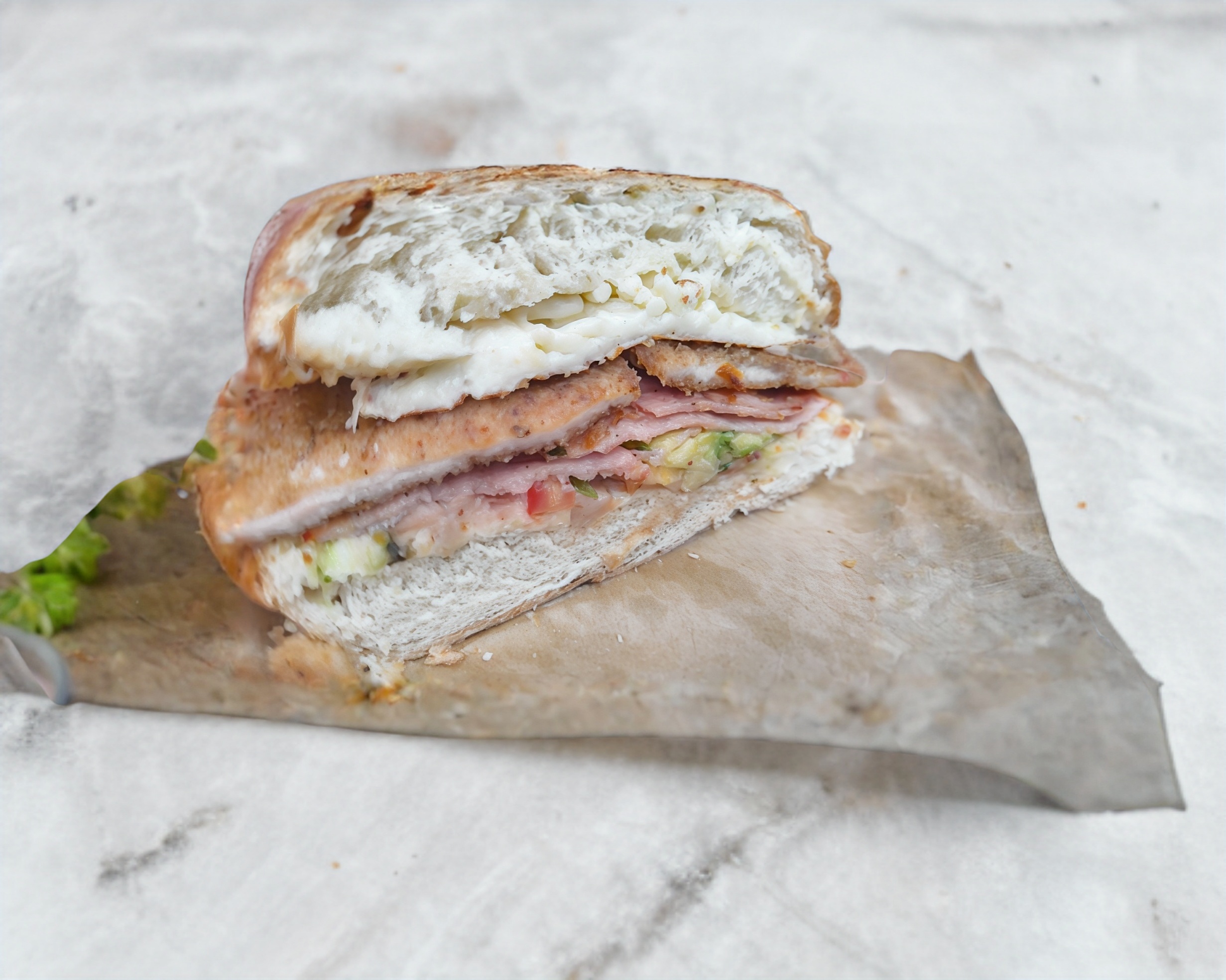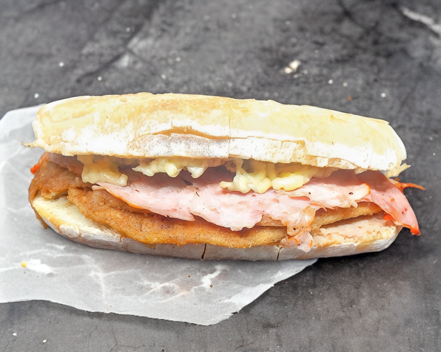 Torta combinada con chorizo, huevo y quesillo.