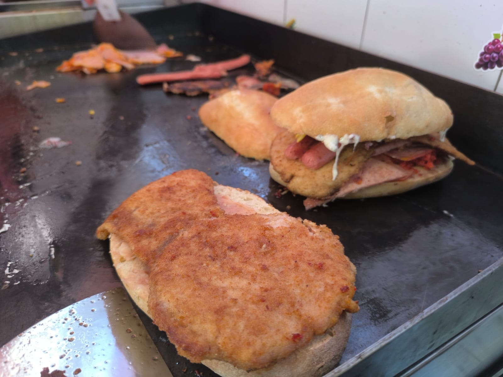 Torta combinada con milanesa, chuleta, huevo, salchicha, quesillo, queso amarillo.