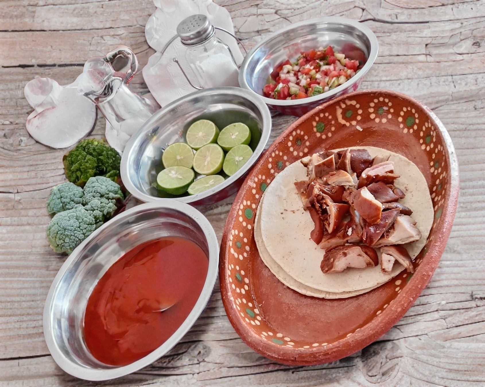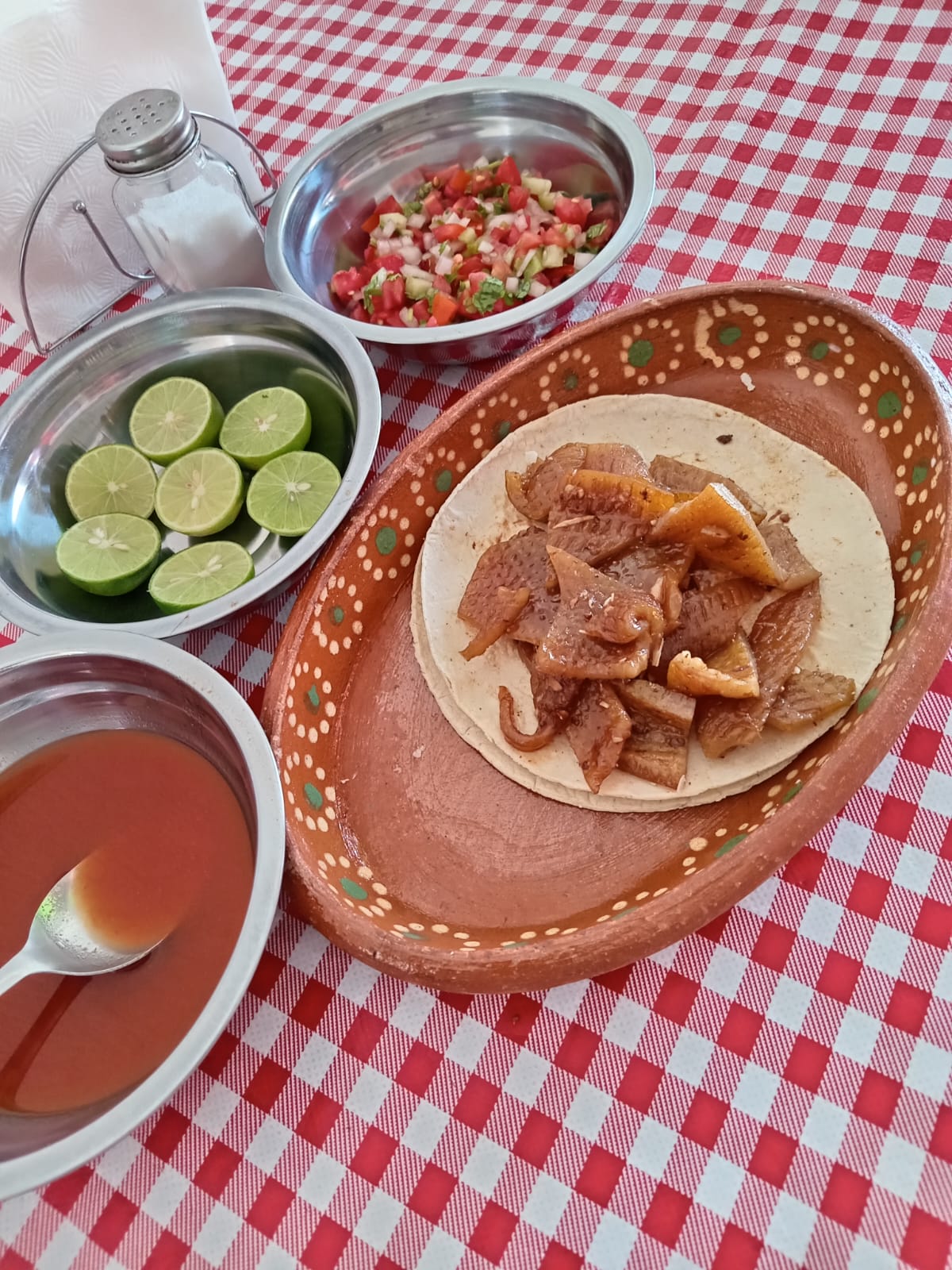 Contiene 5 tortas de carnitas, 5 tacos de papa y 5 tacos de frijol.