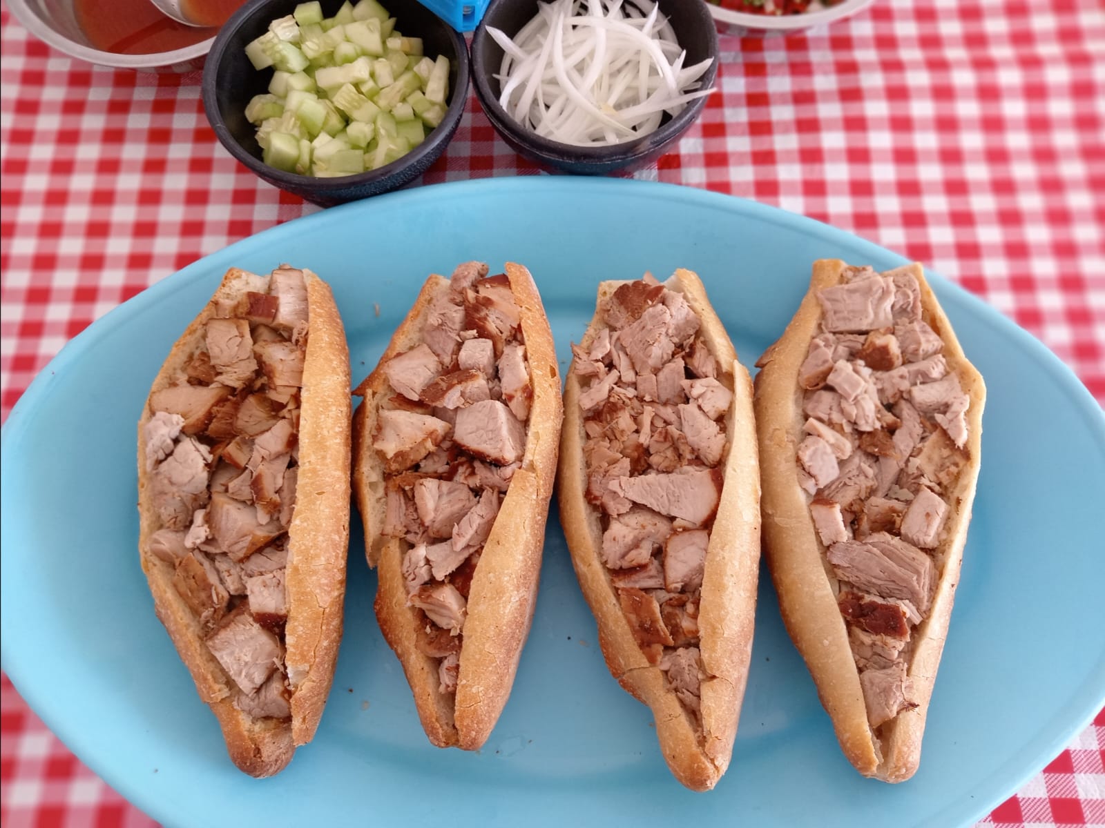 Contiene 2 tortas de carnitas y 2 tortas de buche.