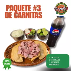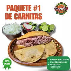 Bebida*1 + Taco con Carne*2 + Torta de Carnitas*1
