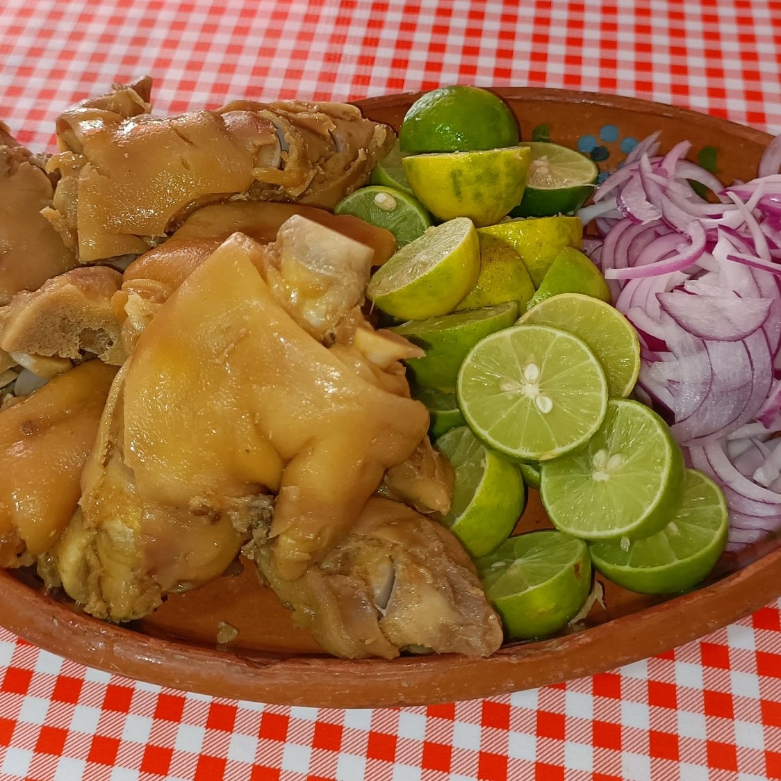 Una pata de puerco, se envía limón, cebolla y un poco de picante. (Porción personal)