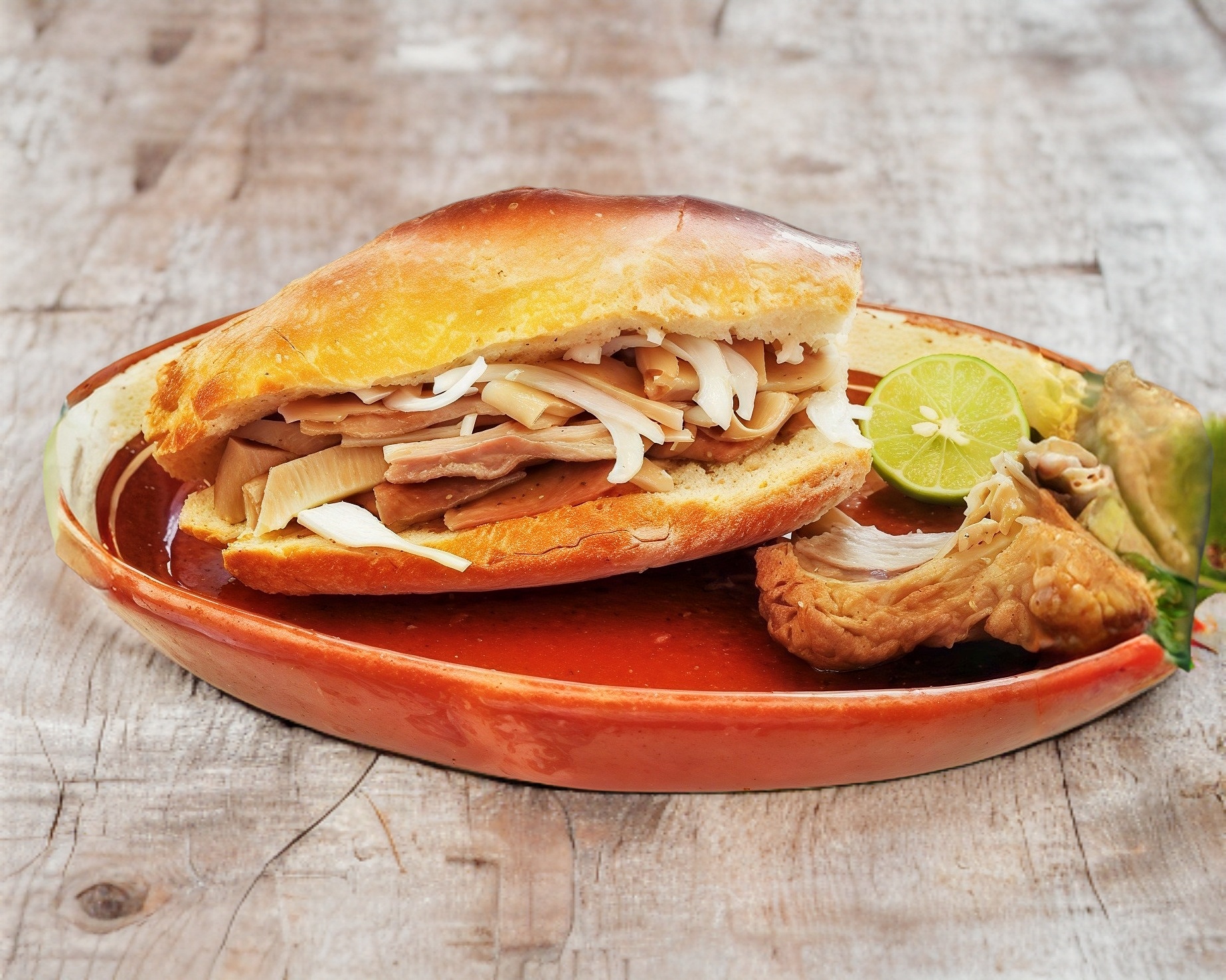 Torta Mixta a base de harinas (Buche y Carné). (90 gramos por cada una )Salsa Picante,Cebolla,Limon y un huesito de cortesia.(opcional)