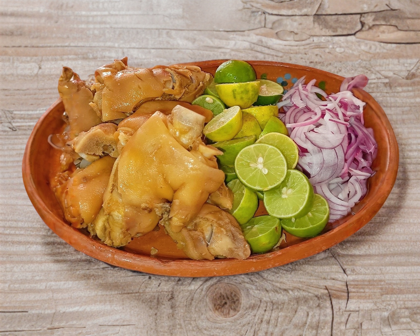 90 gr de carne, Salsa, Picante, Cebolla, Limón y huesito de cortesía.