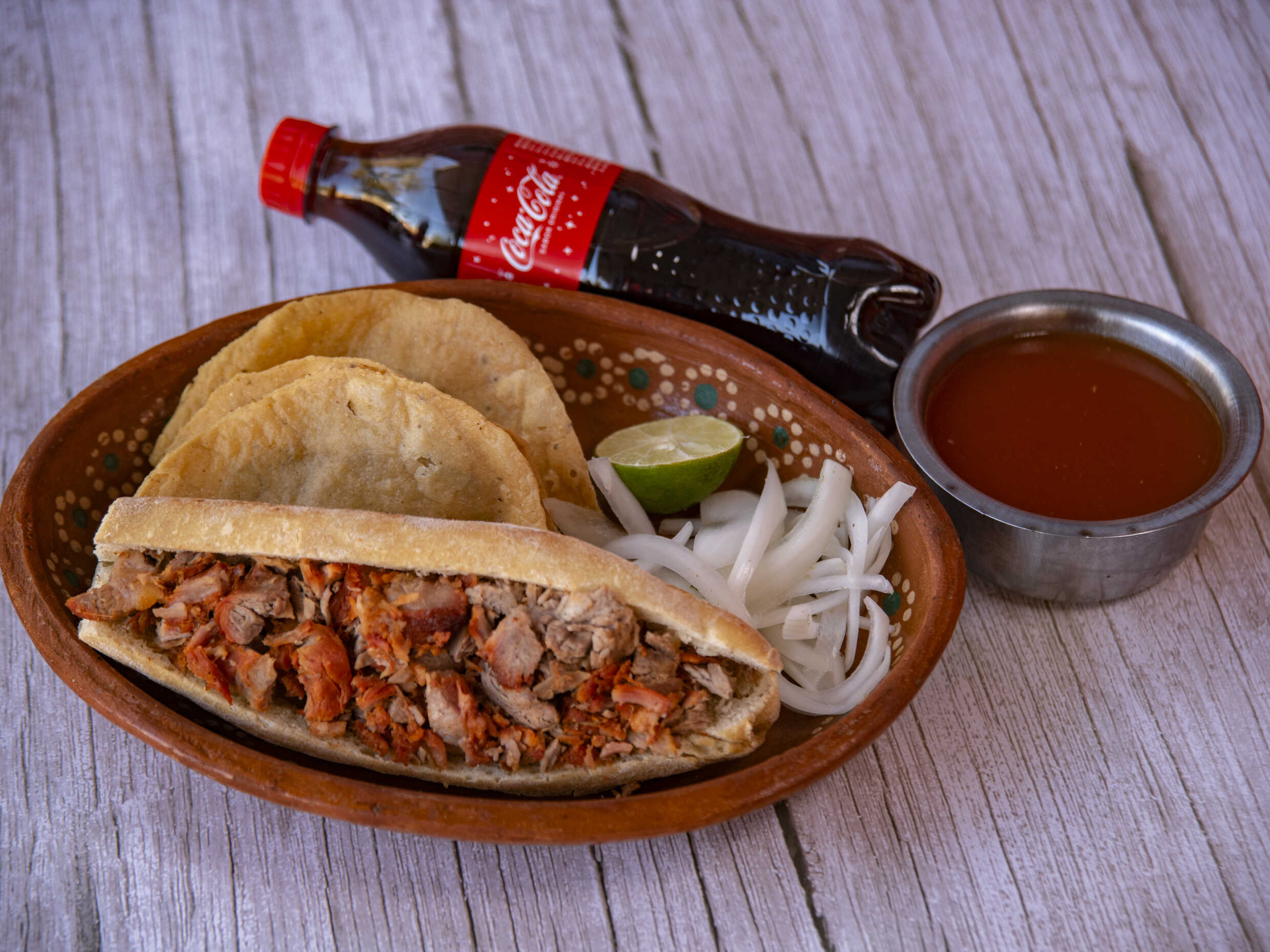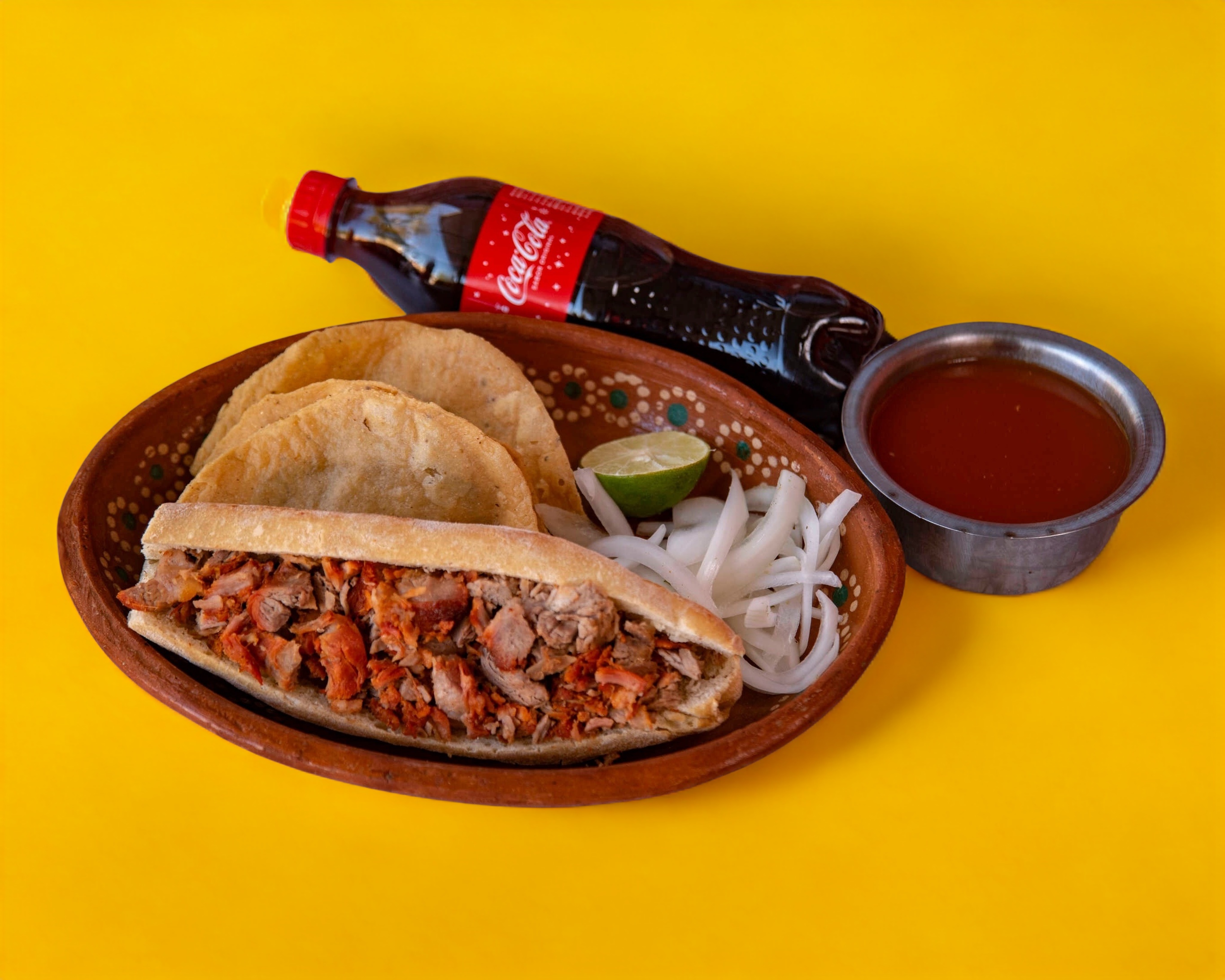 Torta Ahogada de Carnitas 100Gr*1 + Refresco de Taparrosca 400Ml*1 + Taco Dorado con Carne 50Gr*1