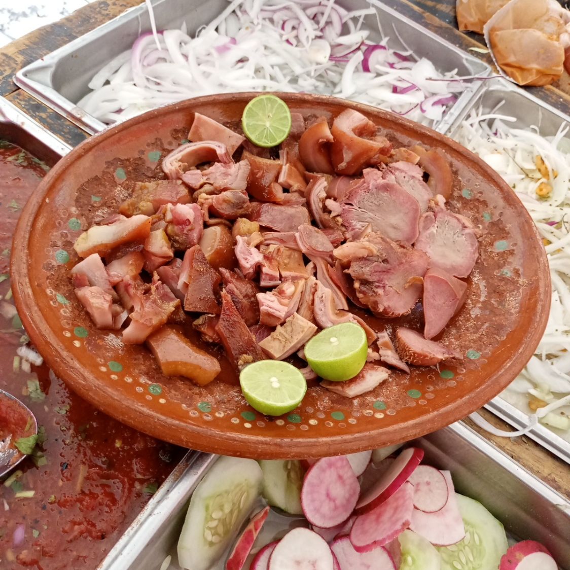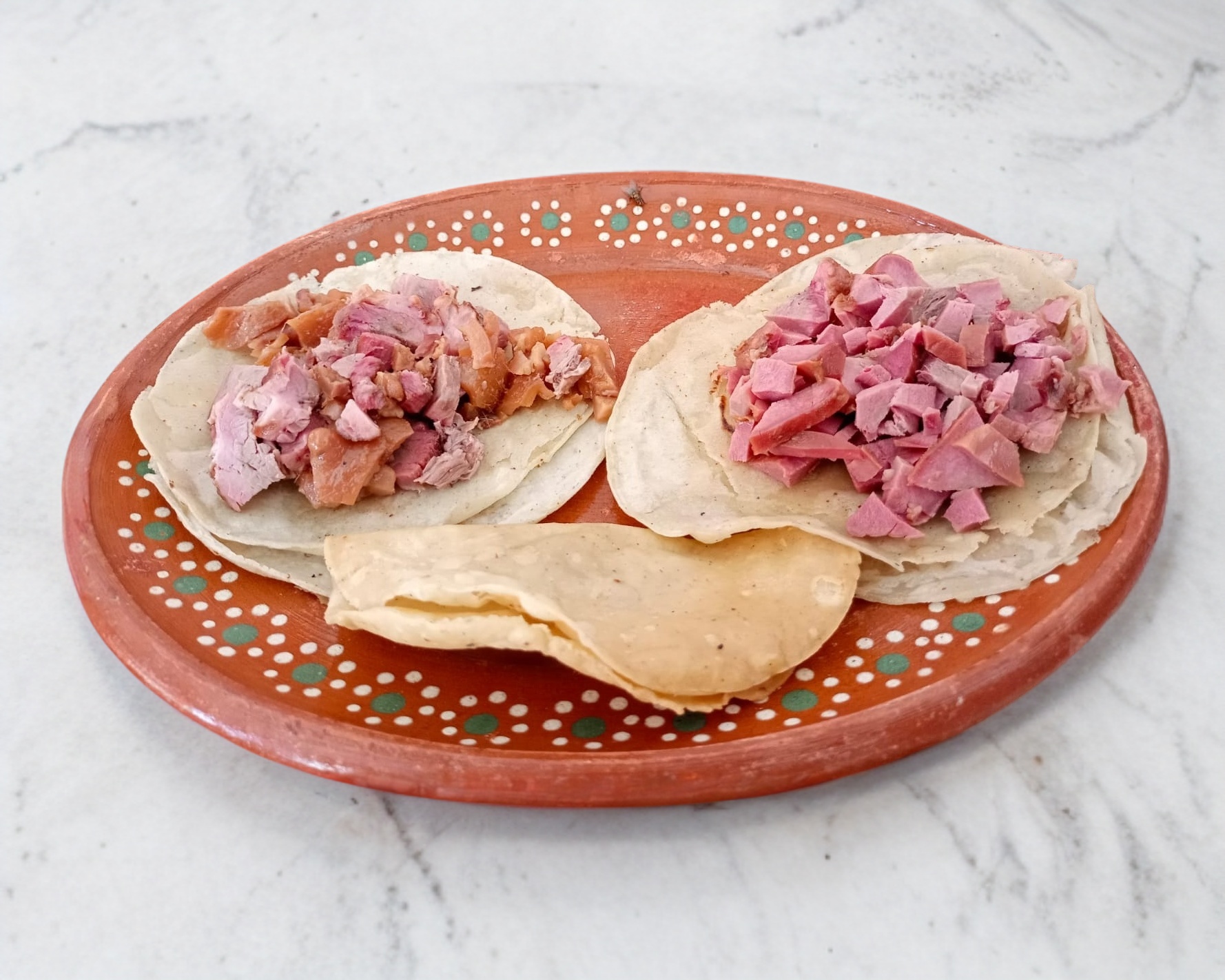 Taco Tradicional al Gusto – Tortilla de maíz recién hecha con tu elección de relleno: papa o frijol. Acompañado de col fresca, cebolla, salsa y chile.