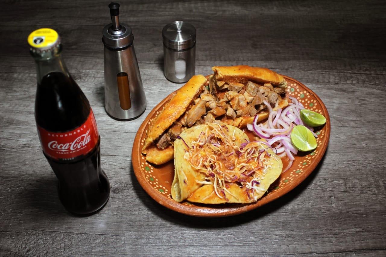 3 tortas de carnitas + 2 coca cola regular de 400 ml