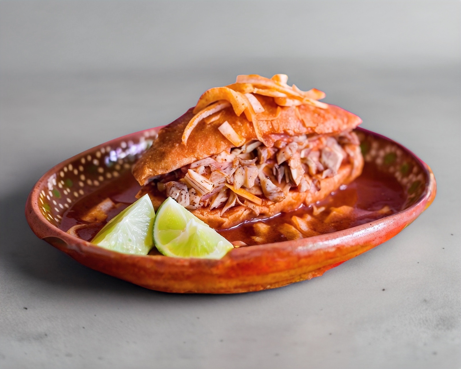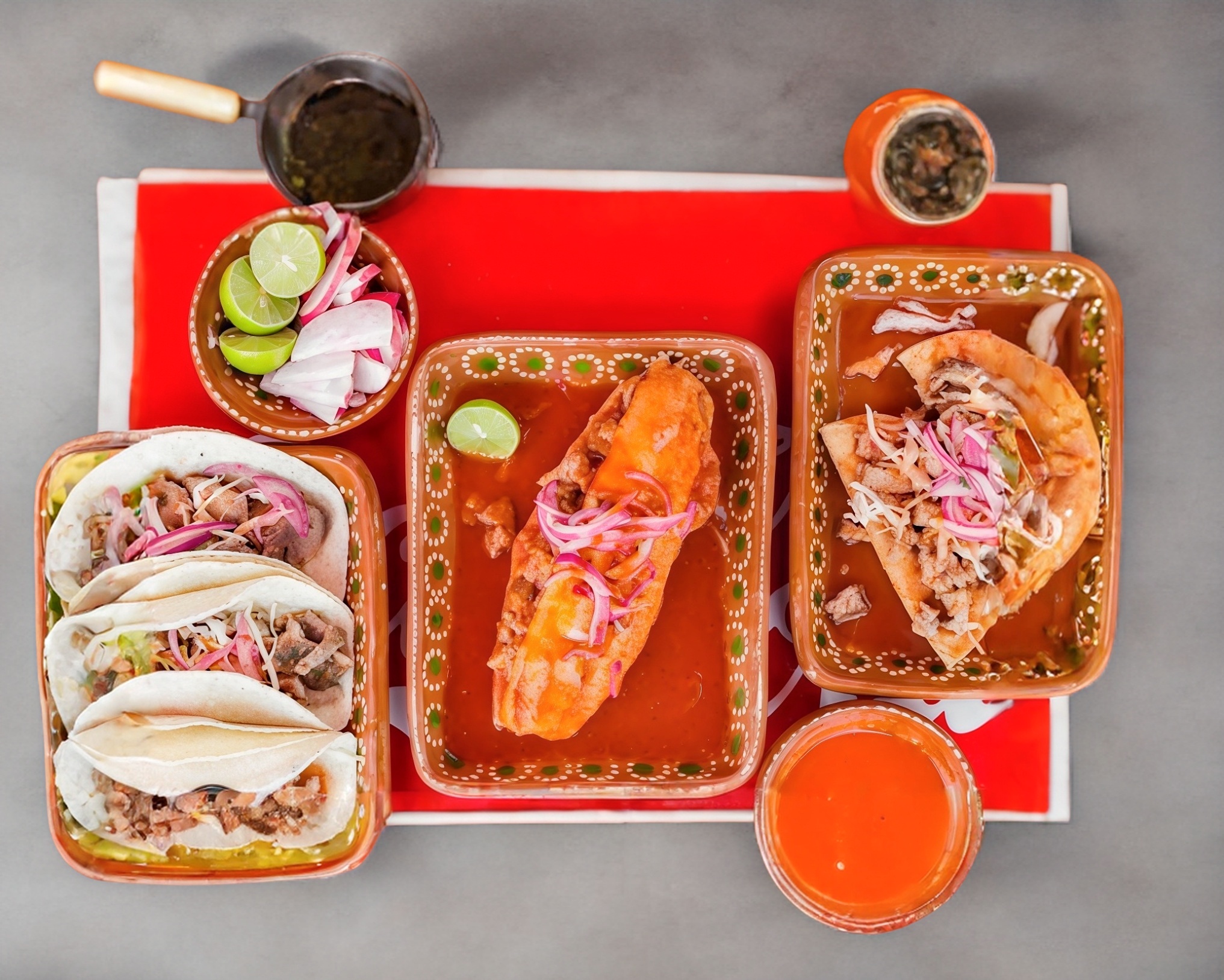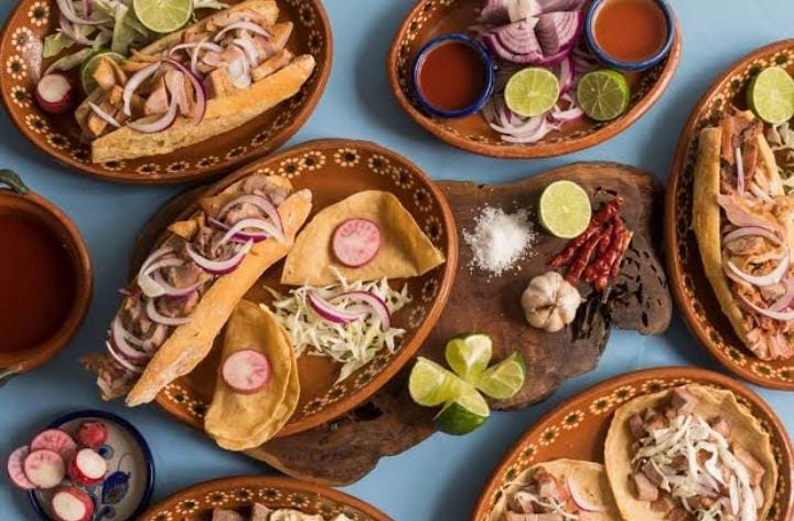 Tortilla, requeson, carne, salsa, chile, col, limón.