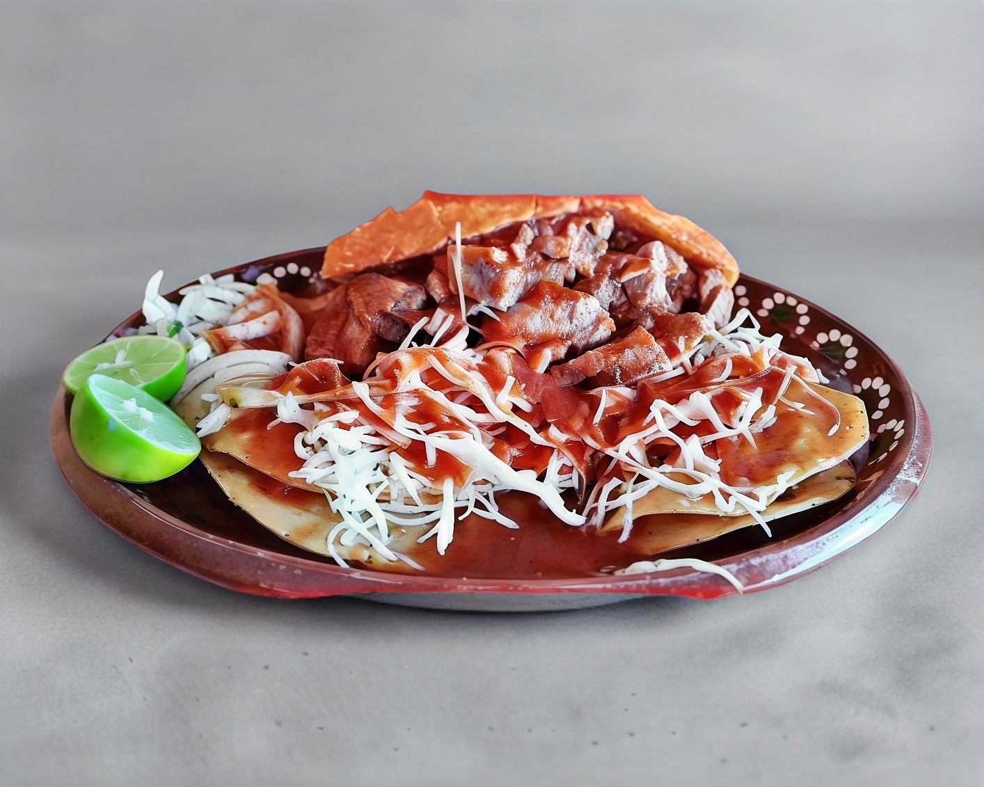 Una Tortilla, requeson, carne, Aparte salsa, chile, col, limón.