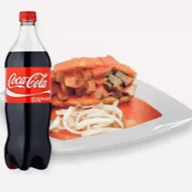 1 Torta clásica de bolillo salado preparado con carne de cerdo, acompañado de frijoles y bañado en salsa de jitomate dulce, 2 tacos dorados sencillos y un Refresco 355 ml