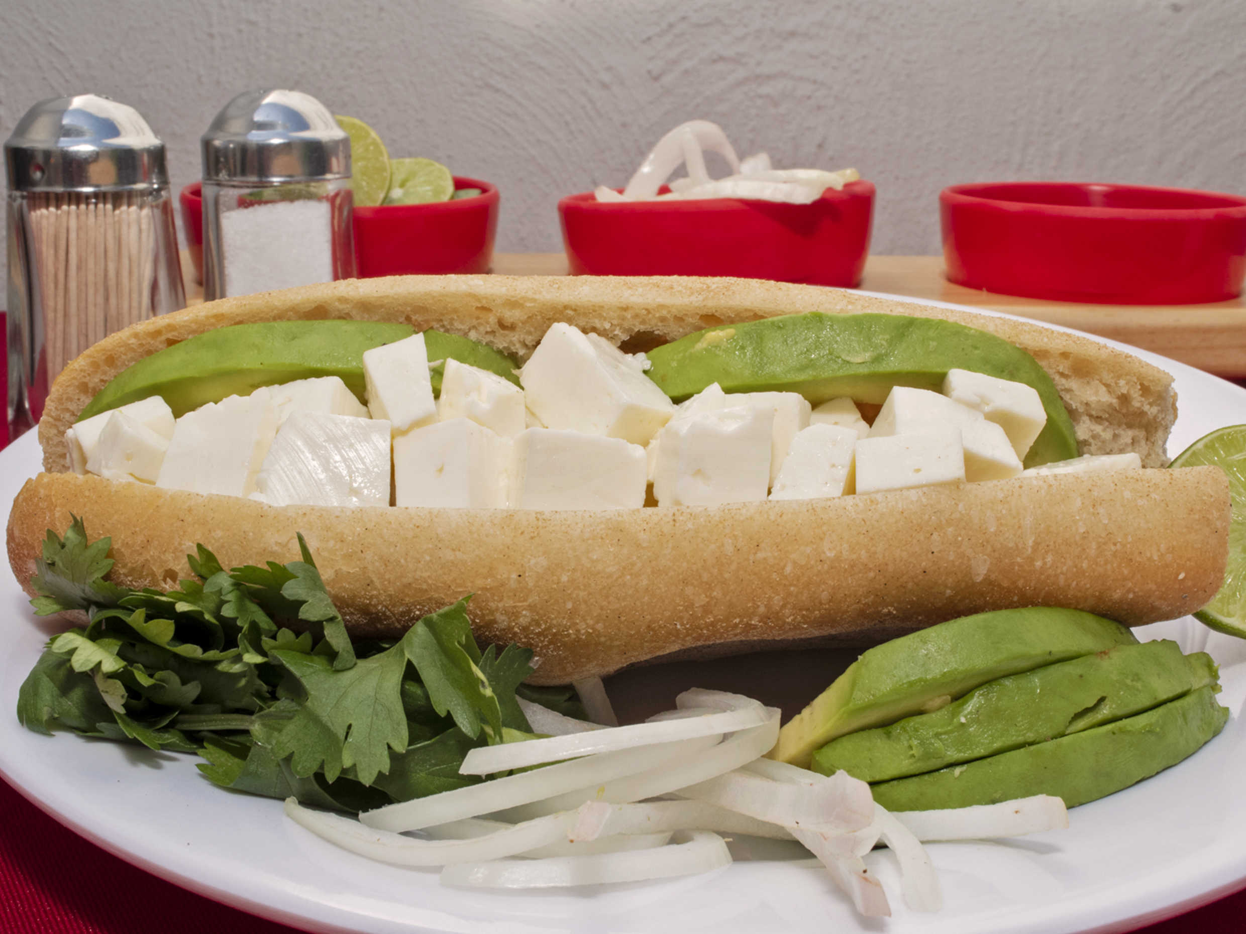 Trozos de panela en un crujiente birote salado, ahogada en nuestra traducional salsa de jitomate.