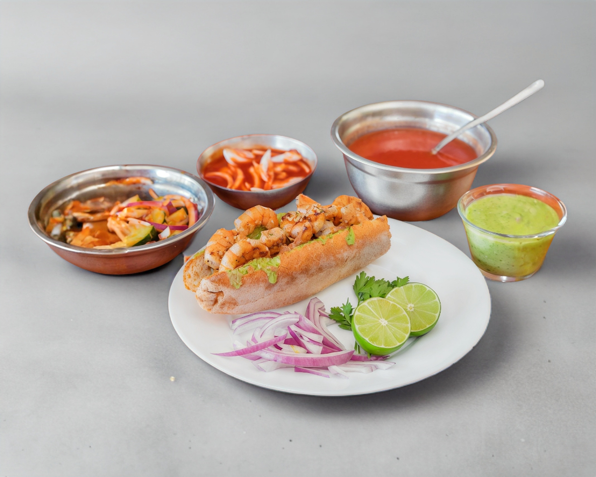 100 grs. De camarón a la plancha, crujiente birote salado con base de aguacate, y salsas de la casa, elaboradas con jitomate, aguacate,y chiles chipotle y Yahualica