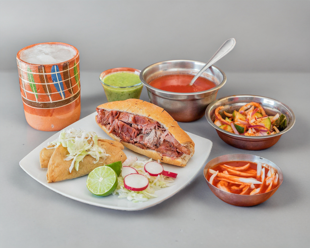 Taco Dorado*4 + Torta Ahogada de Carnitas*4