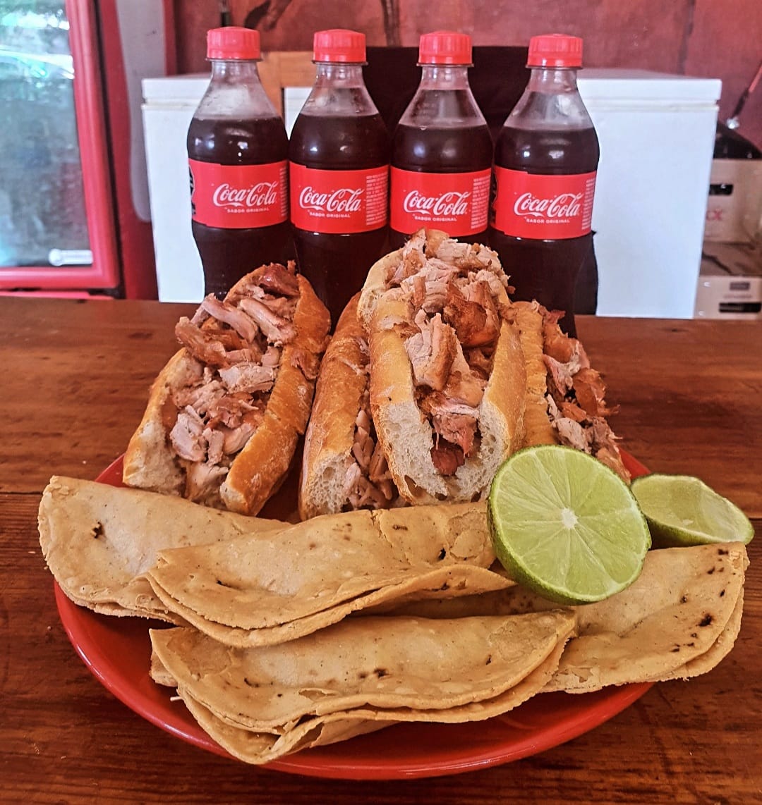 3 deliciosos Lonches de pierna (Acompañados de chulitos jalapeños). Y un litro de agua fresca