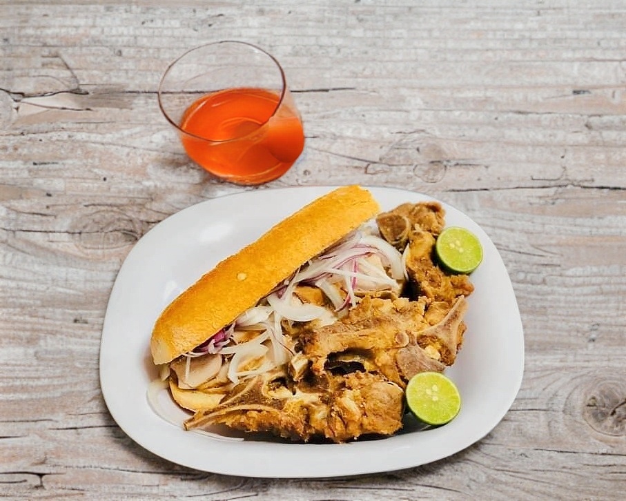 TORTA AHOGADA CON BIROTE SALADO , FRIJOLES ADENTRO Y BUCHE O LENGUA ADENTRO .