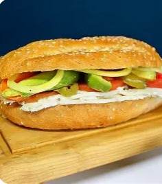 Dos deliciosas tortillas de harina, pierna, salchicha de pavo, queso mozzarella , jamón y salami de pavo, acompañadas de aguacate, cebolla y jitomate, con salsa especial, crema y mostaza.