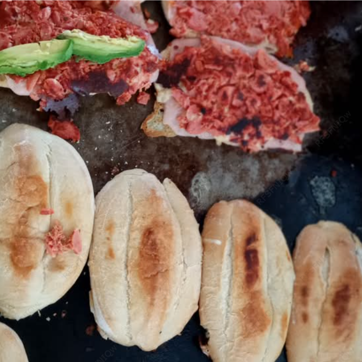 Riquísimo chorizo de cerdo, queso blanco, jamón de pavo, aguacate, cebolla, jitomate y aderezos.