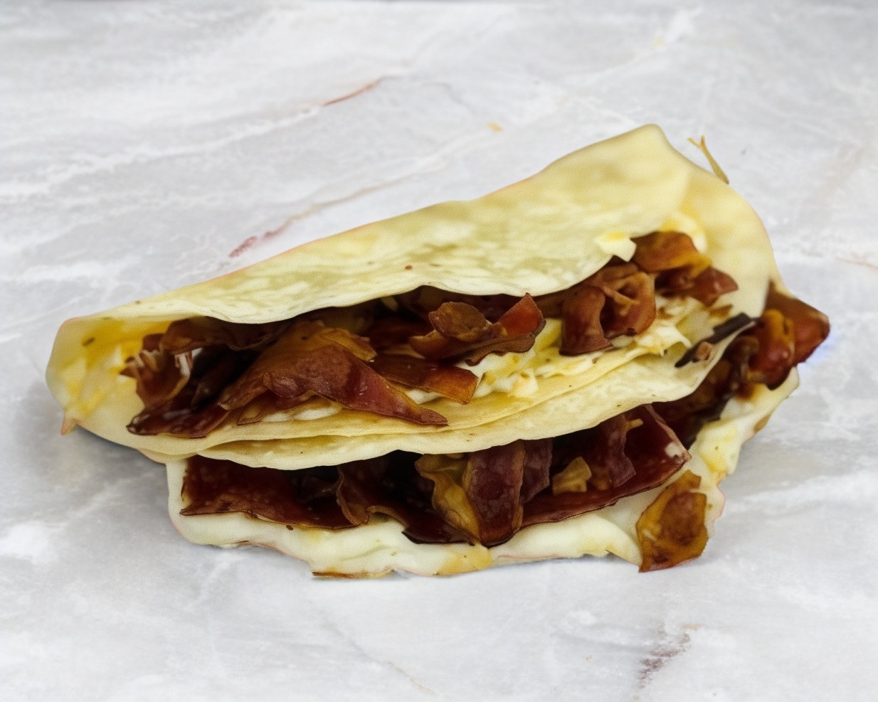 Hecha con tortillas de harina, delicioso queso blanco y tocino.