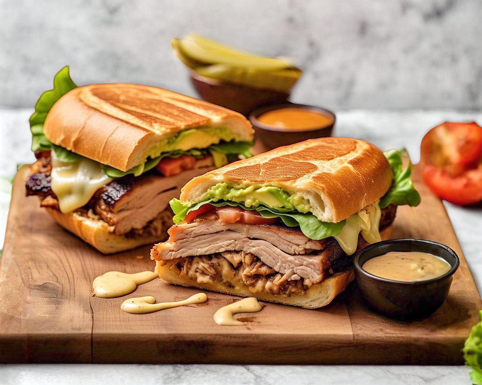 TORTA DE PIERNA, JAMON Y PANELA HECHA CON TELERA, JITOMATE, CEBOLLA Y AGUACATE.