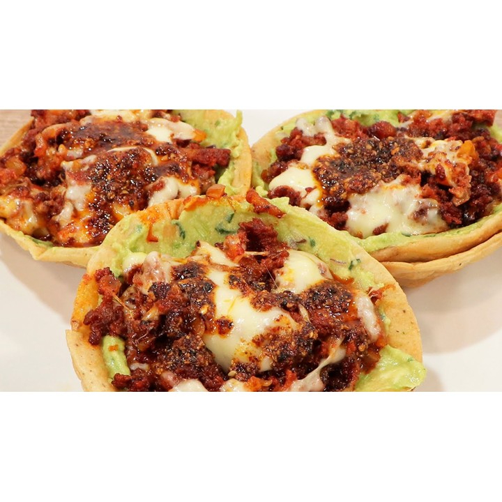 Preparado con carne de res de primera calidad, seleccionada y marinada con un sazón especial y cocinada a la perfección cada bocado es tierno, jugoso y lleno de un sabor autentico.