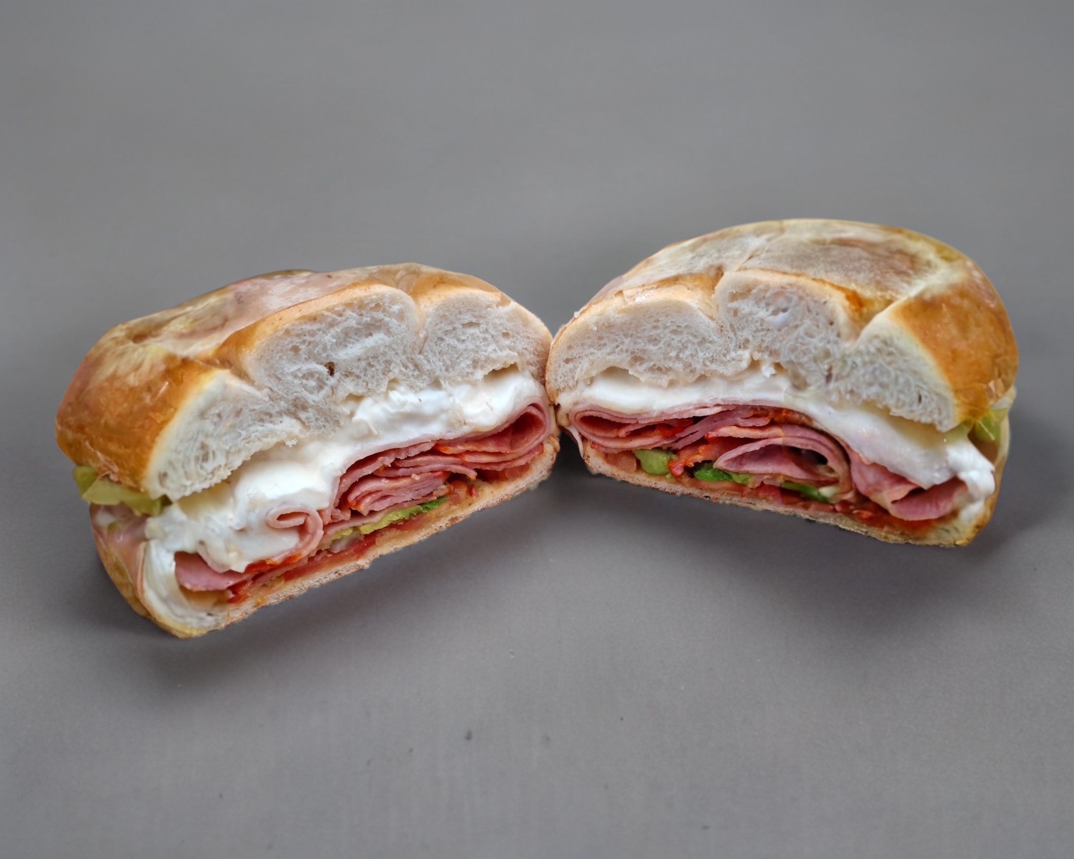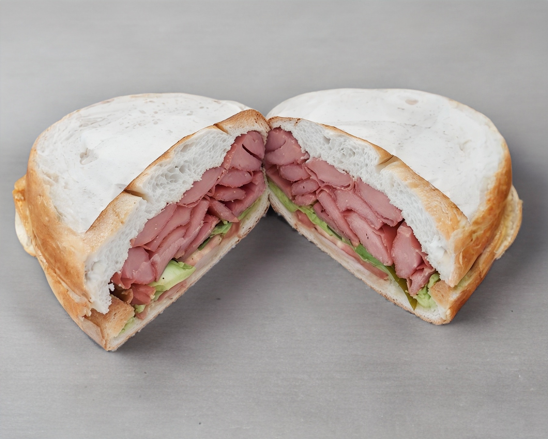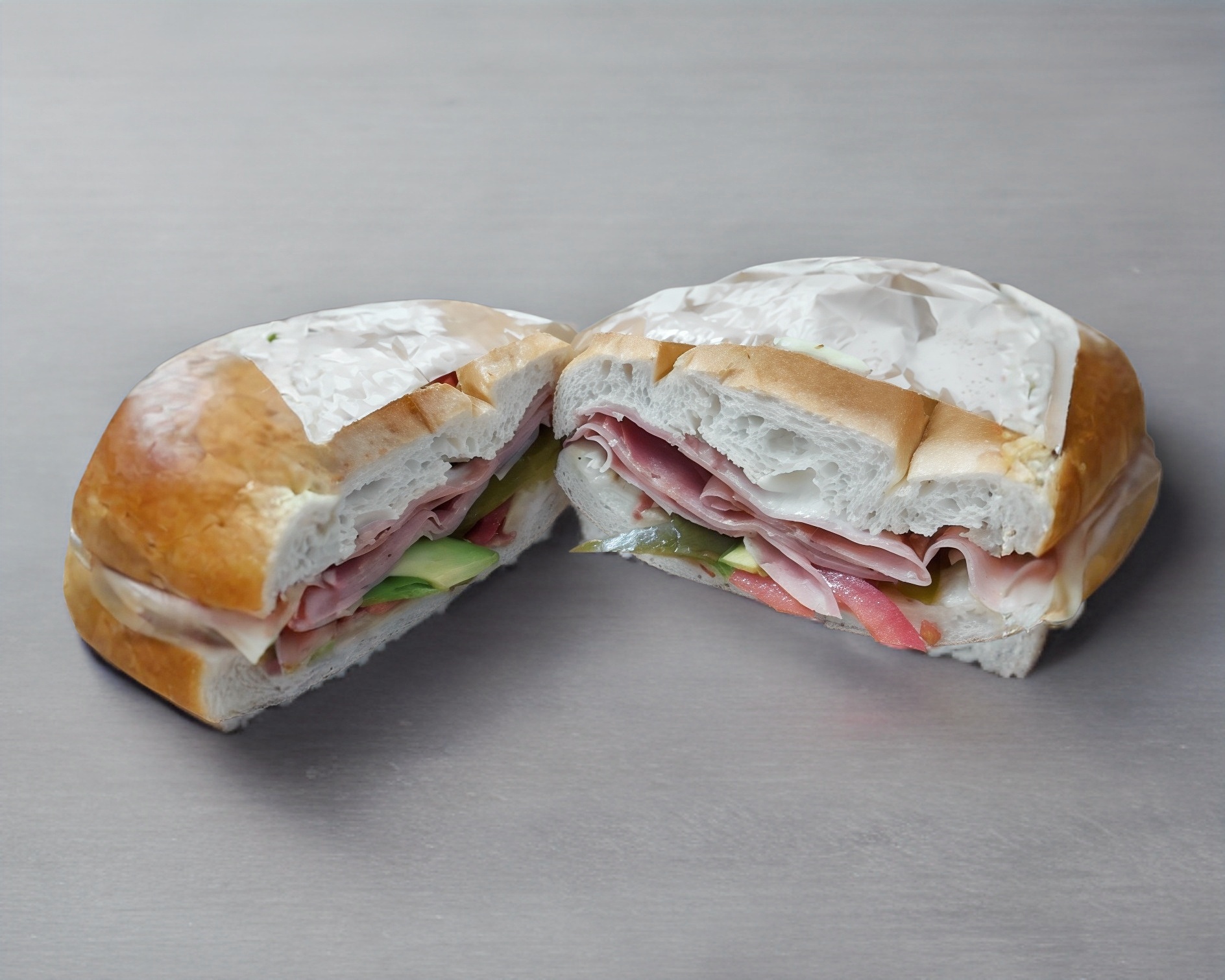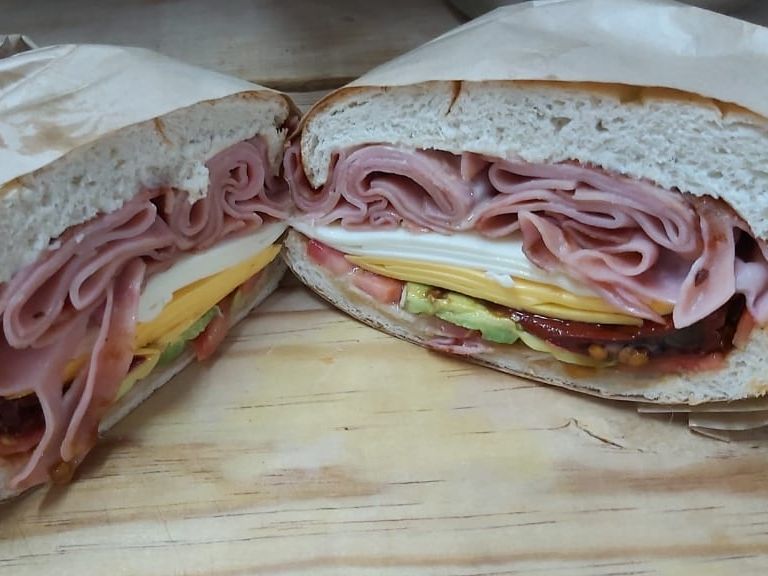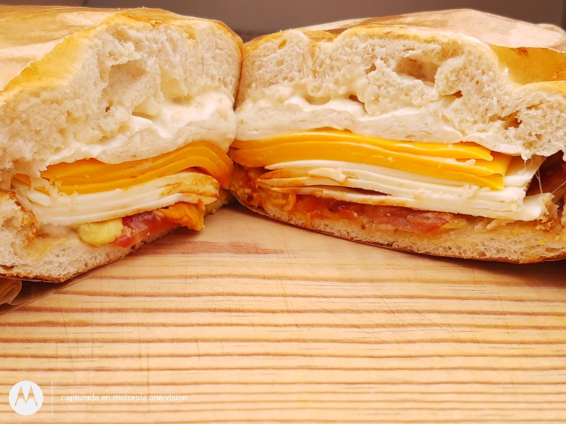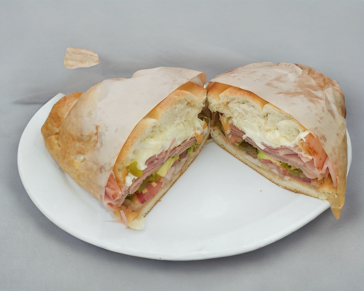 Jamón, queso blanco, queso amarillo, jitomate, cebolla, aguacate, frijol, mayonesa, jalapeño