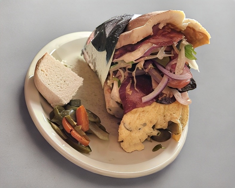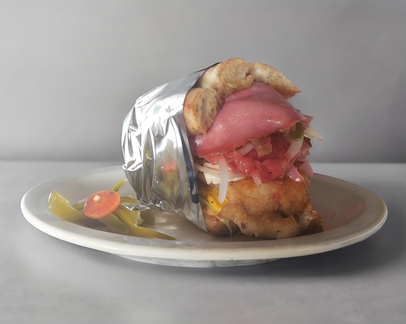 Deliciosa Torta Hawaiina con jitomate, jamon, quedo amarillo, cebolla