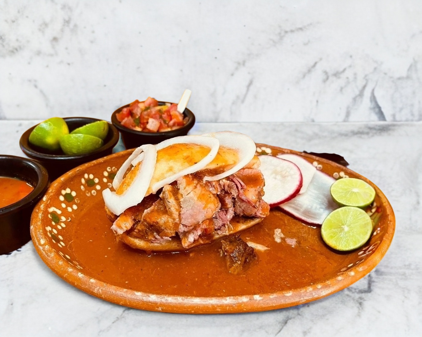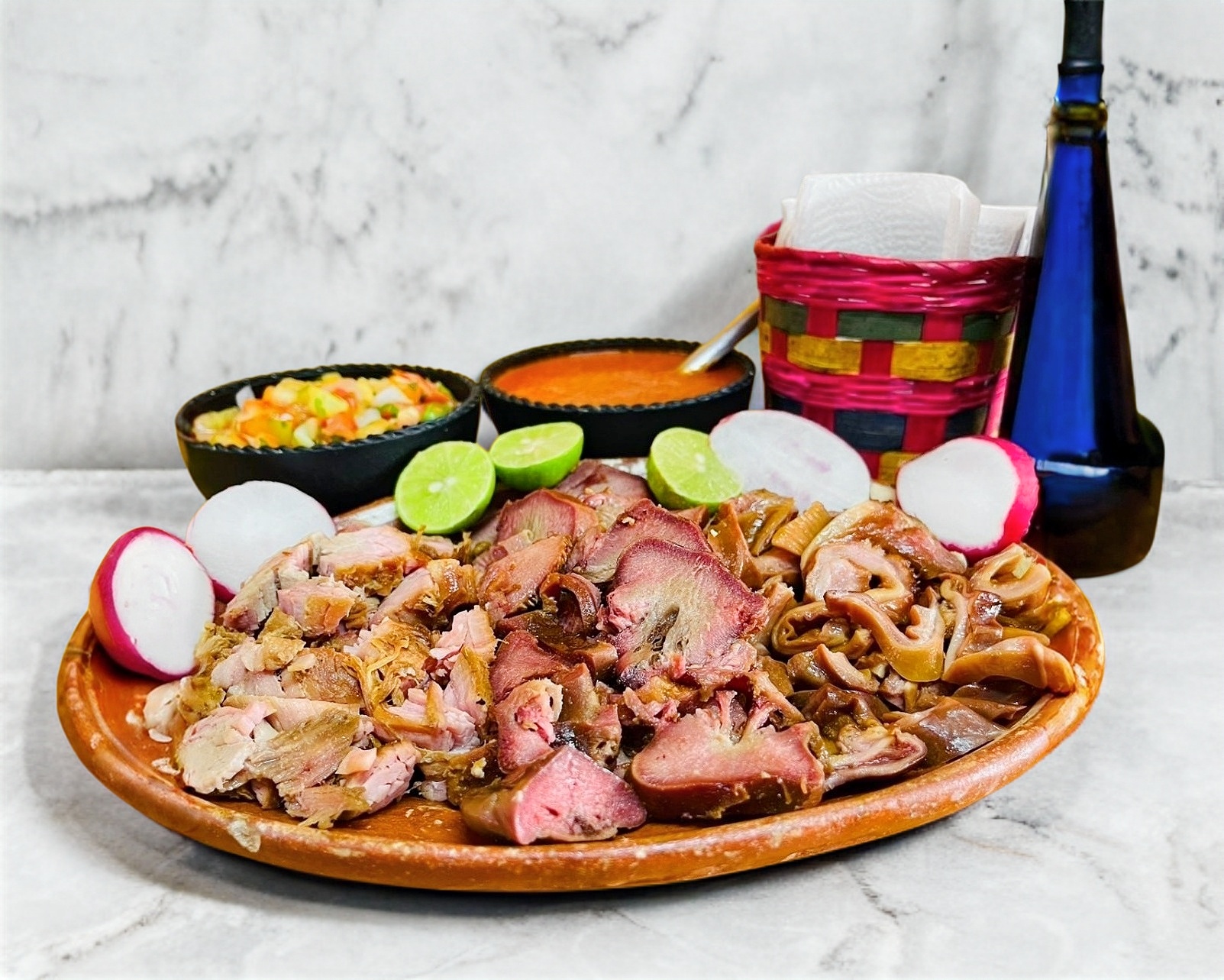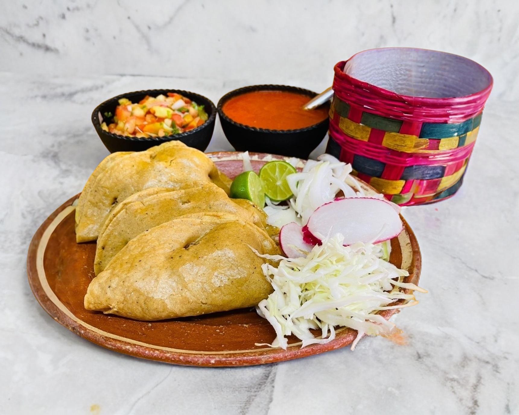 Incluye salsa, picante, verdura y limon