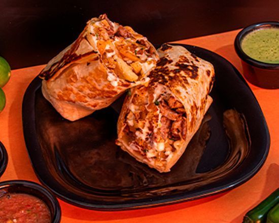 Delicioso burrito en tortilla de harina burrera, relleno de arrachera, frijoles y quesillo.