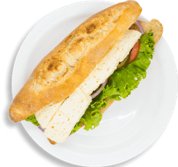 Rico bolillo, con pollo a la plancha, crema, cebolla, lechuga y chile jalapeño.