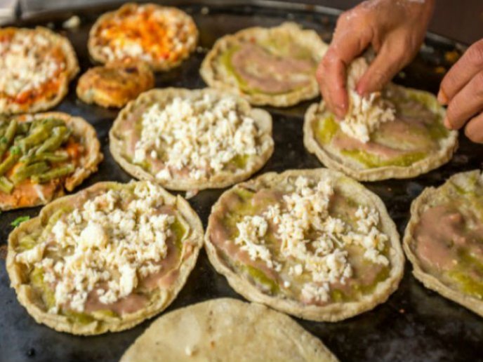 Masa Fritas o a la Plancha. Queso a elegir, salsa verde, crema, queso y chile por separado Preparación