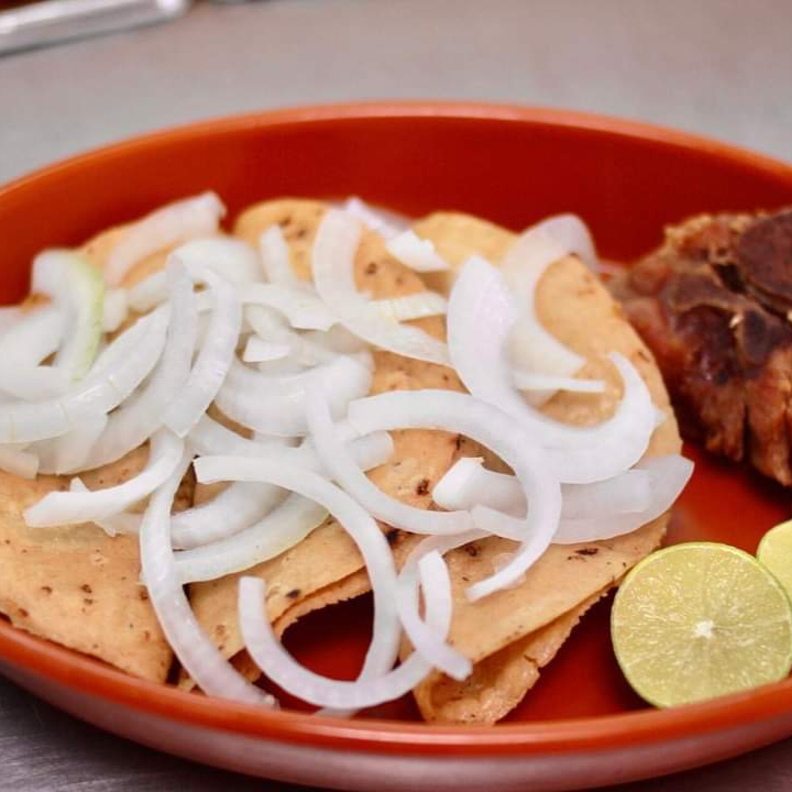 1 Taco sencillo acompañado de cebolla, limon y bañado en salsa de jitomate