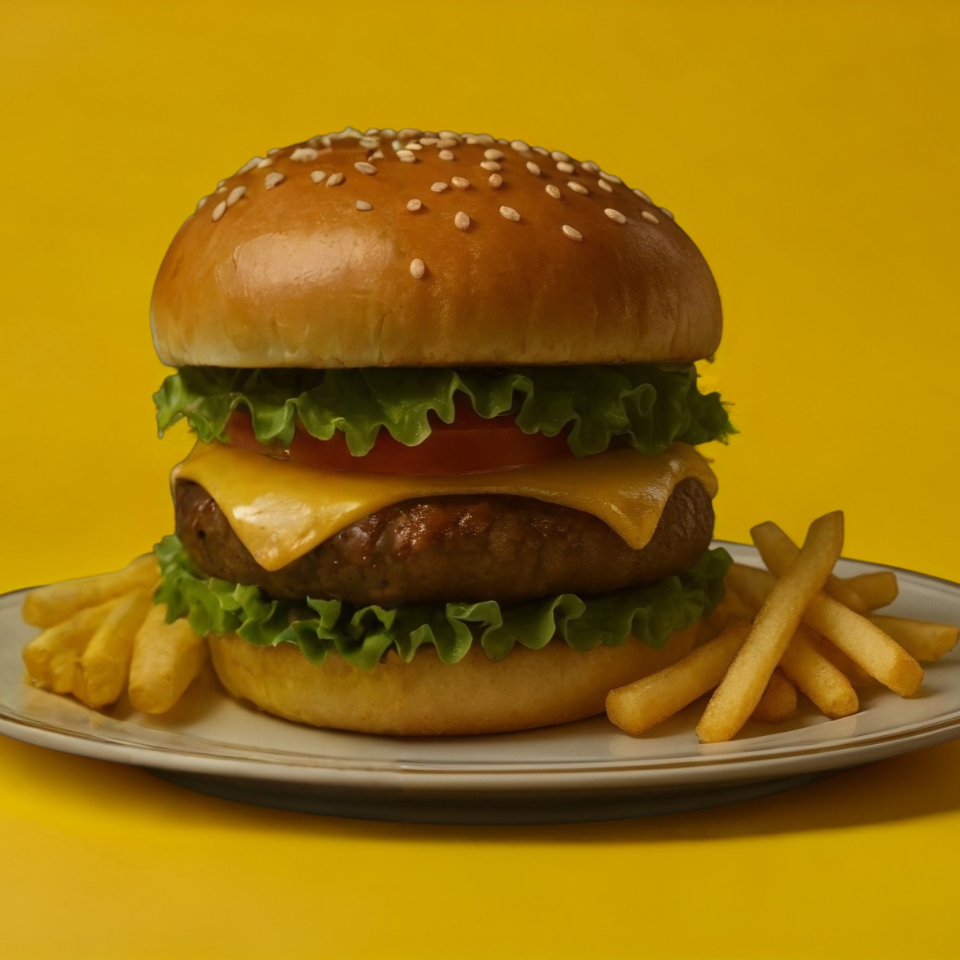 Hamburuesa con carne de res, queso amarillo, verdura y aderezo . *No incluye papas.
