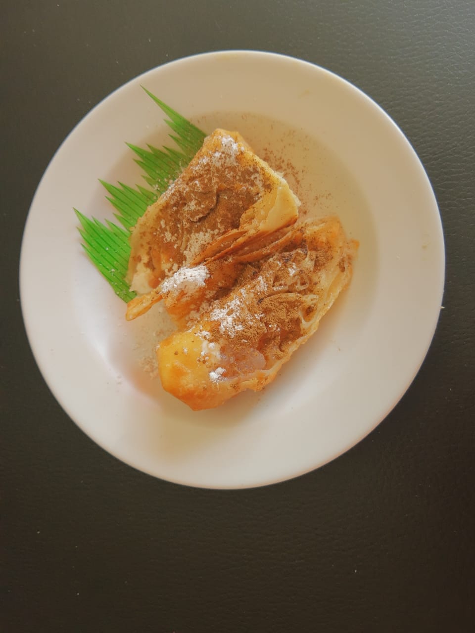 Rollo de manzana con filadelfia espolvoreado con azucar glass y canela.