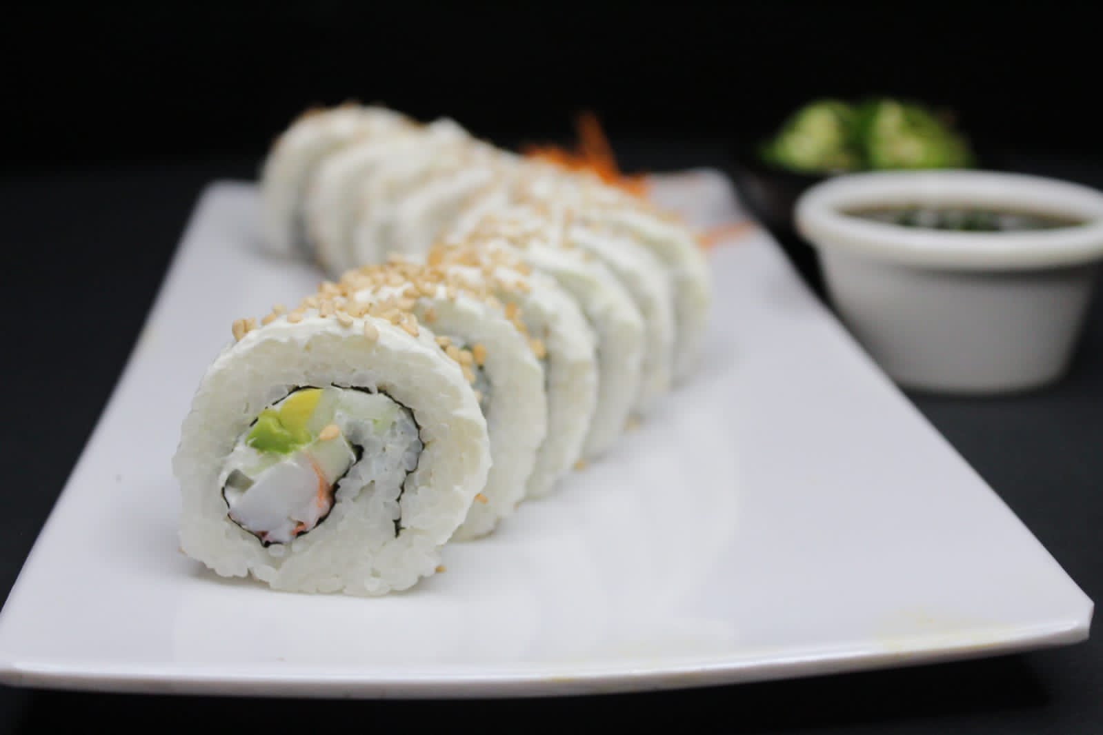 Por fuera surimi, aguacate, Philadelphia, ajonjolí y por dentro Philadelphia, pepino, aguacate y proteína a elegir.