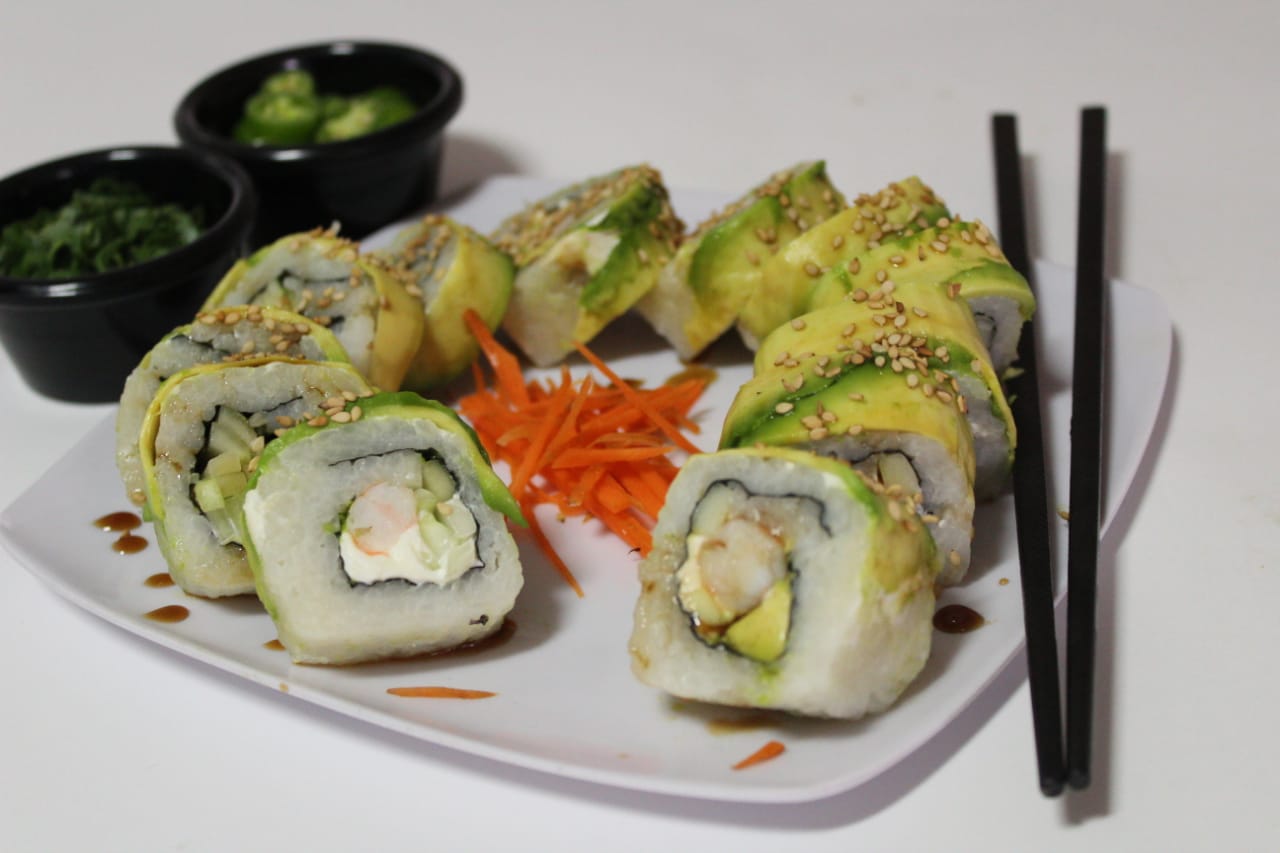 Por fuera aguacate, por dentro Philadelphia, pepino, aguacate y proteína a elegir.