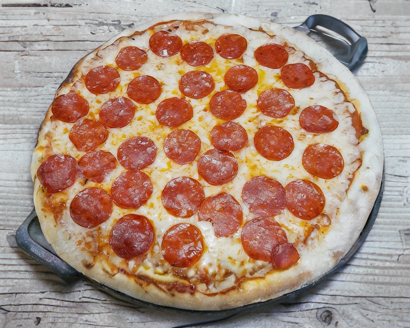 Pizza estilo romana de 30 cm (6 rebanadas), cubierta con pomodoro, queso manchego y pepperoni. (Para máx. 2 personas)