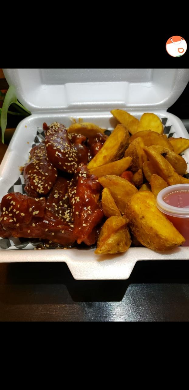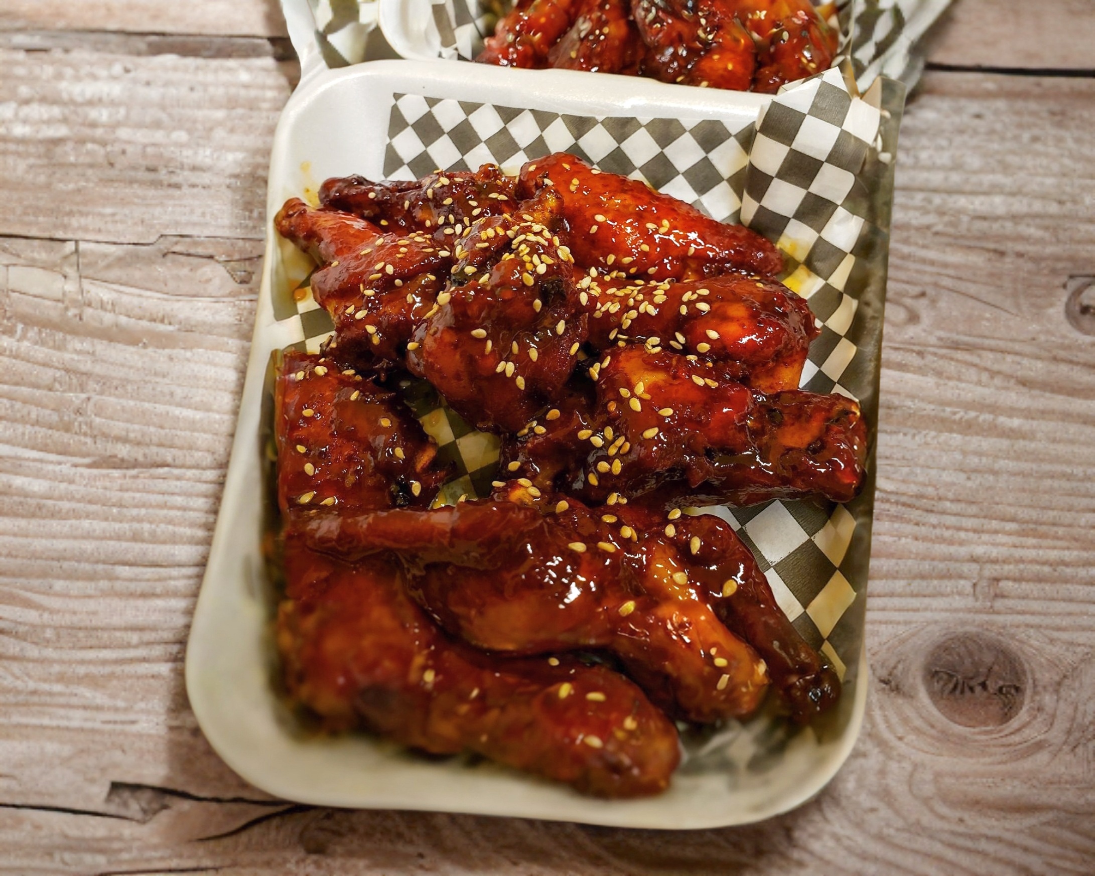8pz de alitas adobadas, bañadas con salsa y espolvoreadas con ajonjolí.