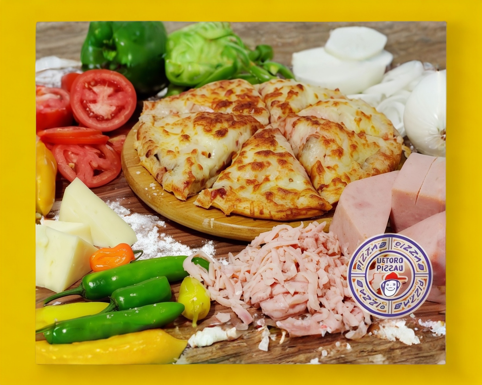 Jamon, jitomate, cebolla y morron